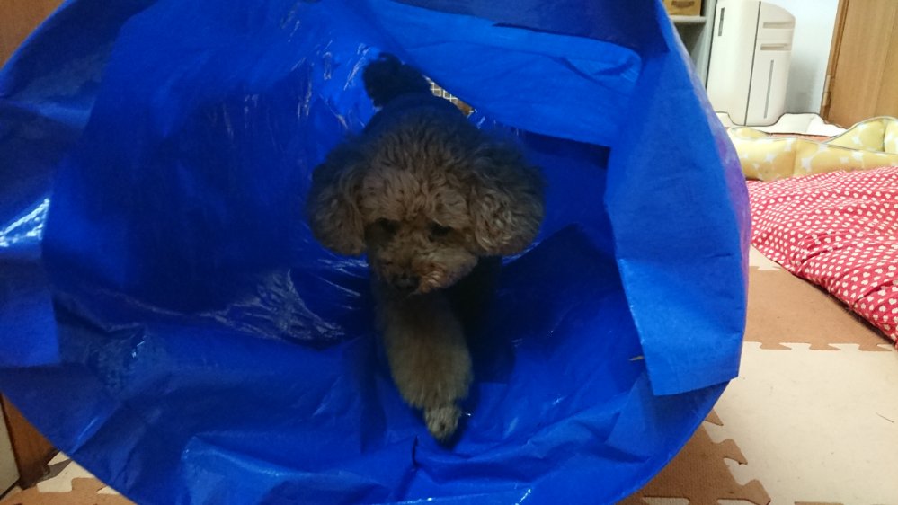 レアちゃんはジャンプとか激しい運動はいけないので、走らなくても大丈夫なトンネル☺