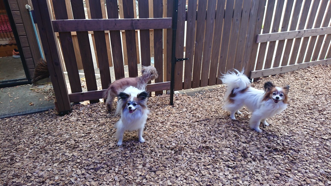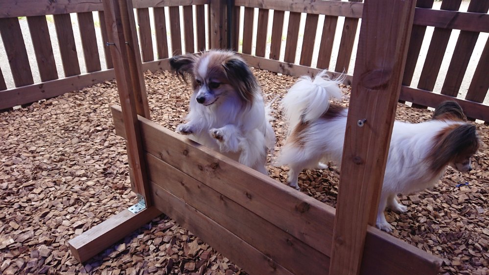 レアちゃんもチャーリー君もドッグランに出ると歩き回ってます😁