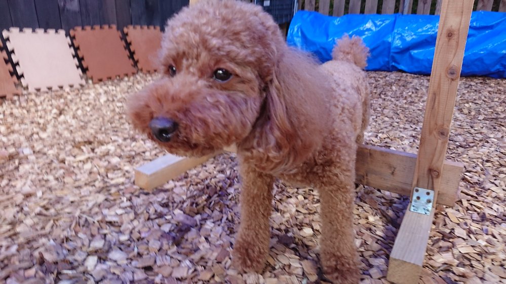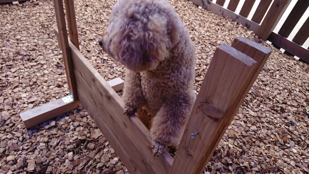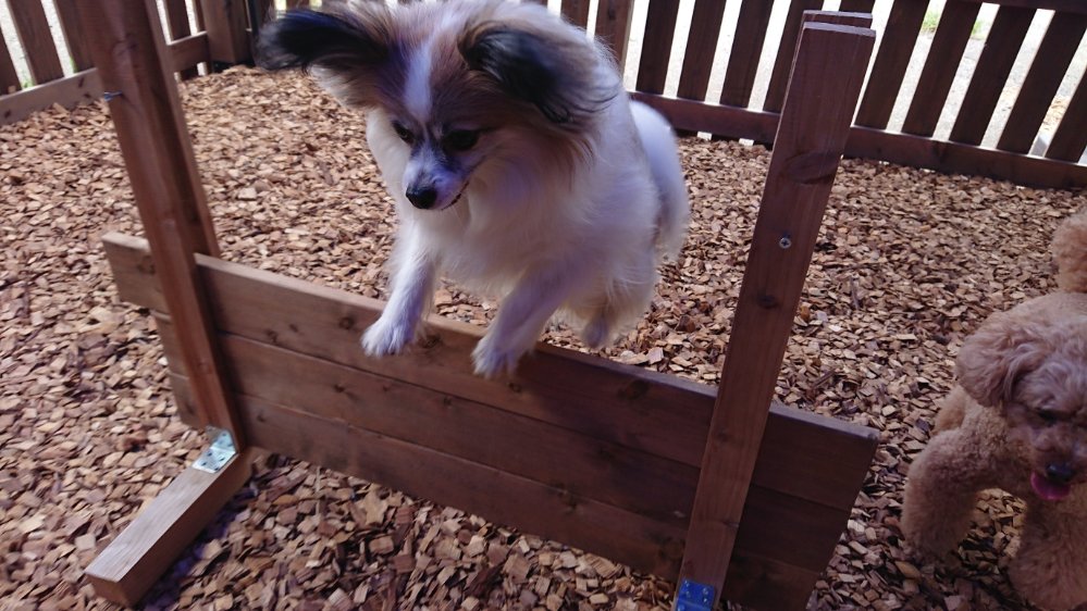 風もありいつもみたいな太陽も出てないので今回はドッグランでハードル遊び😁