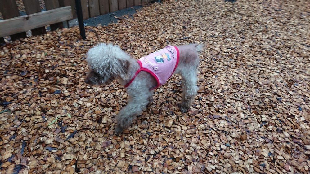 チャーリー君は服を着せて出てみましたが、チャーリー君には寒かったのか少しふるえてたので、お散歩止めてドッグランでトイレ出しにしてます😀
