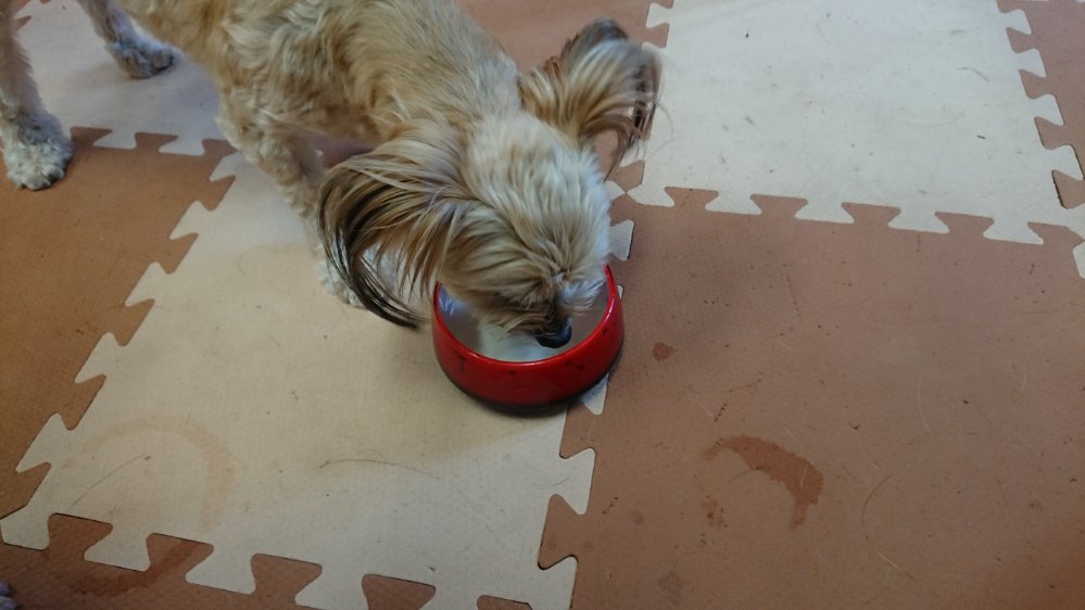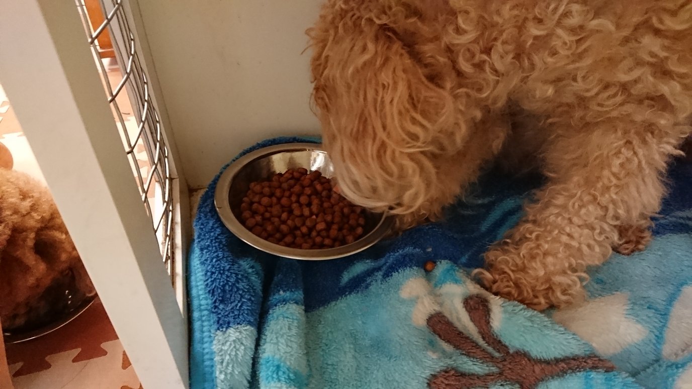 チョコちゃんは昨日の夜中に半分食べてます、朝ごはんは食べずに隠してます😦