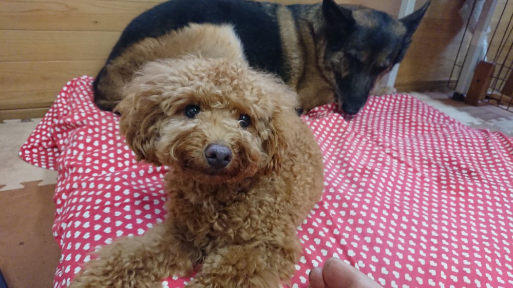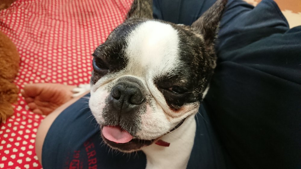 ブッチ君もお泊まりに来たので一緒に朝ごはん😀