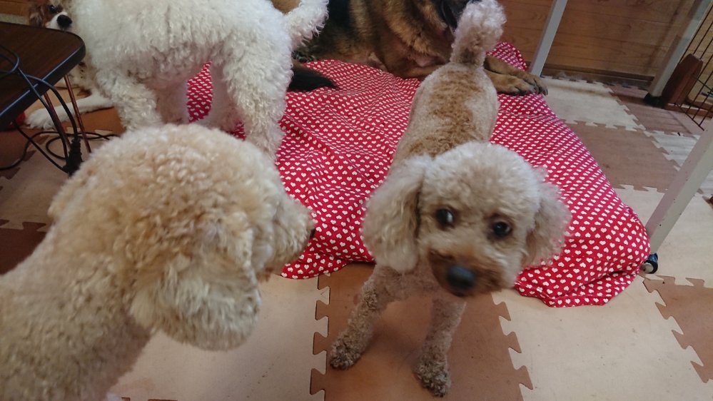朝からお泊まりに来てるハッピーちゃんとマロ君も一緒にワッチャワッチャ😇