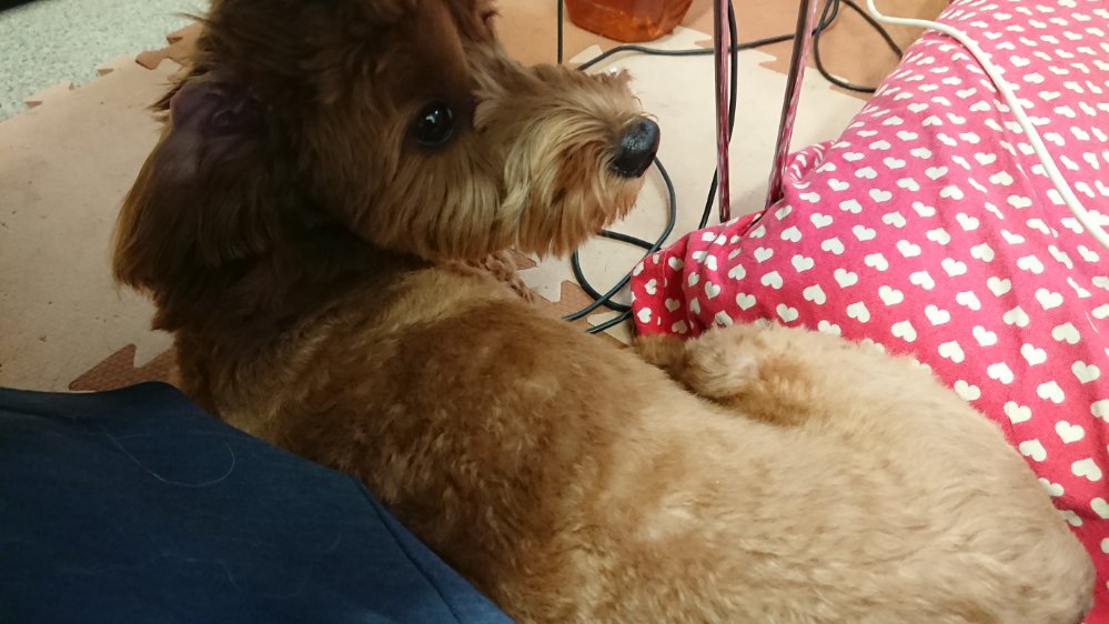 ハッピーが遊んでの眼差しをおくりながらのブログ書き込み🙂