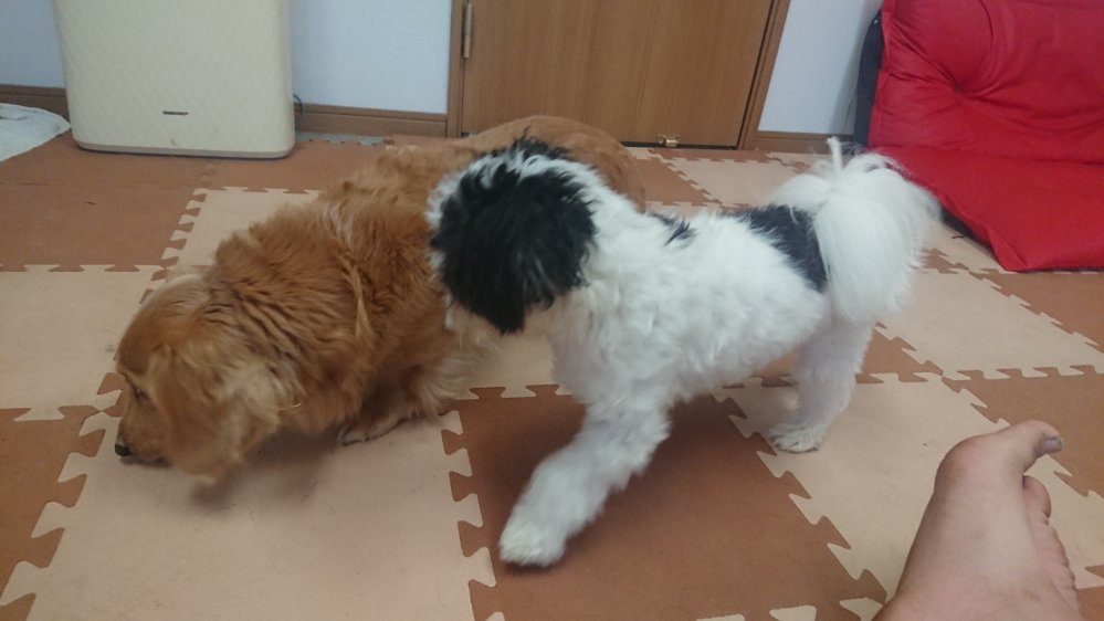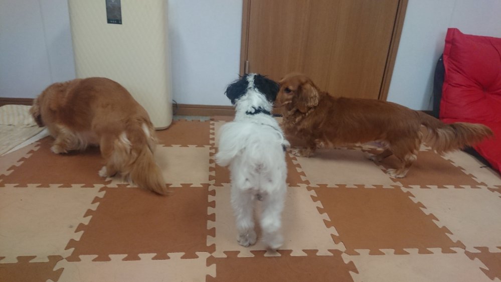 コロンもあずき、たまにあずきがイーっとなりますが、お互いに吠えあう事があれからは無くなりました🙂