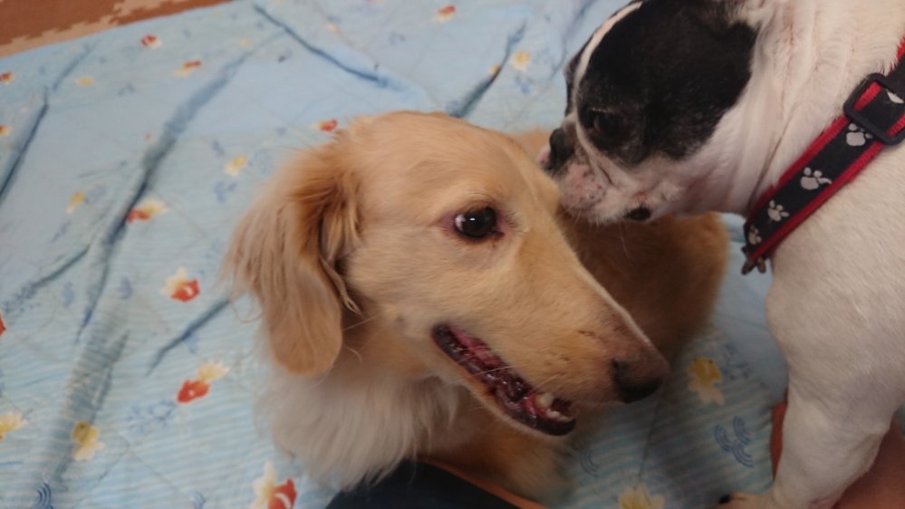 スカイは静かにしてますが、たまにモカが寄ってきても逃げず少し興味があるようで😀