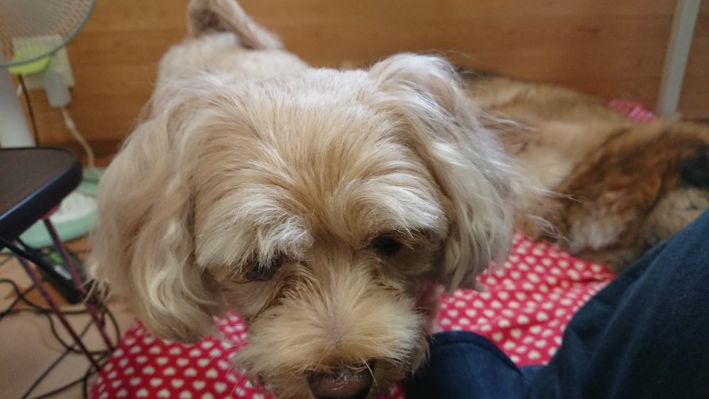 膝はピノが占領して、マルは空くのを待ってます🙂