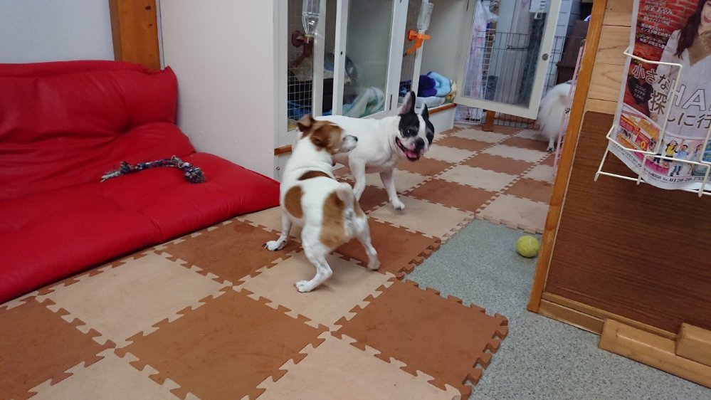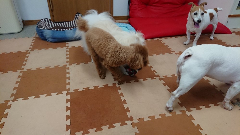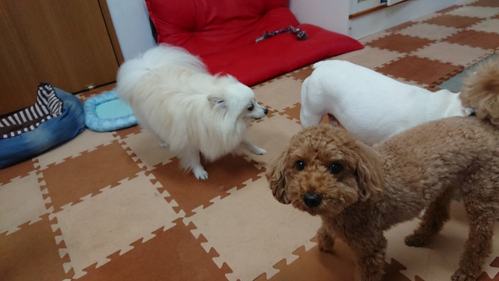 ピノ、メロン、かんぺい、そして朝からお泊まりに来てるルークは思いっきりはしゃいでます😯