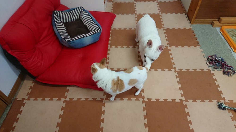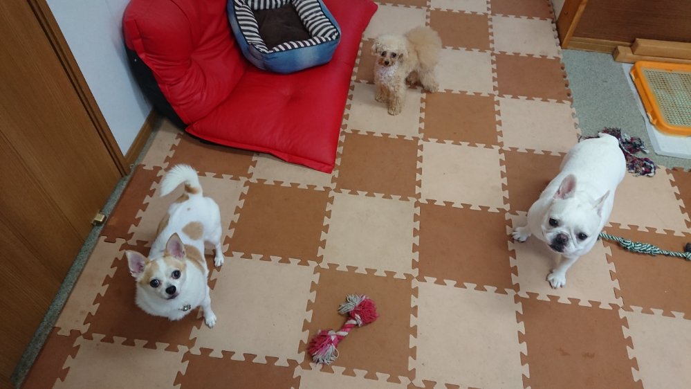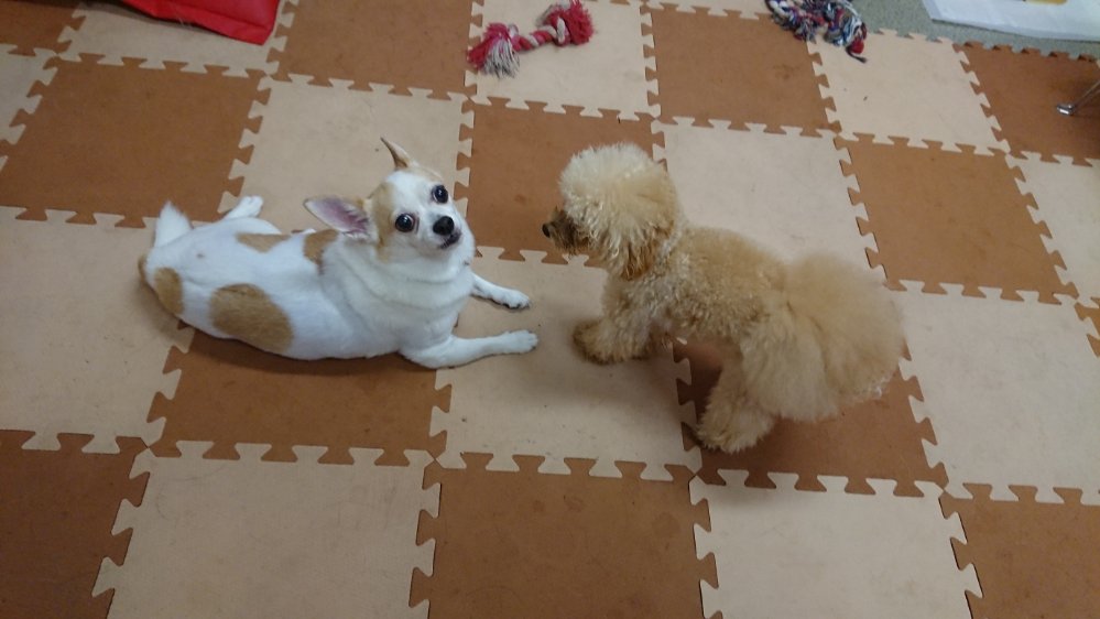 ご飯が終わり、朝からタロー君とサクラちゃんがお泊まりにきてます!