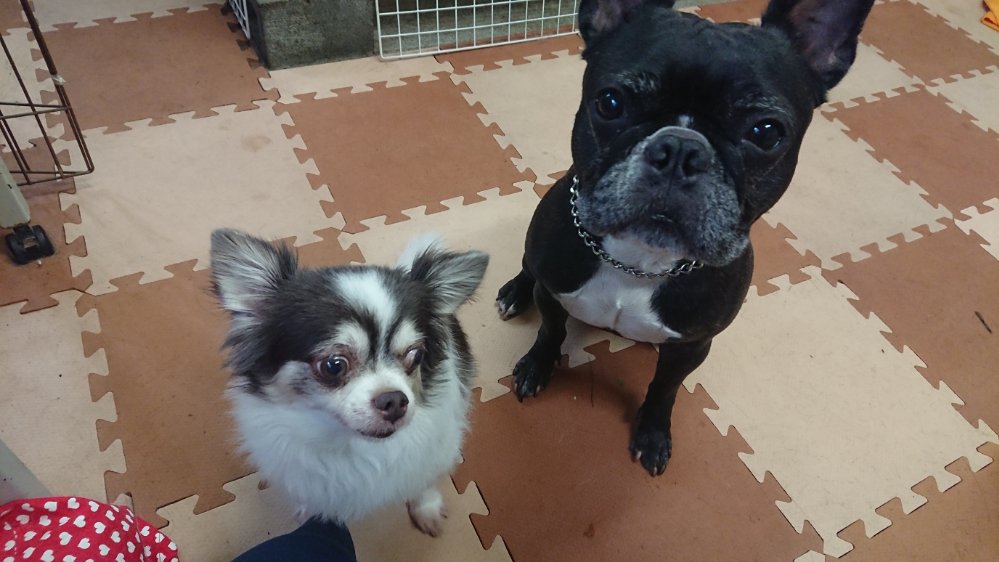 チョコとカイを隣同士で座らせてみたり、サン!お手!乗せた!と思ったらペシペシしてきたり😙