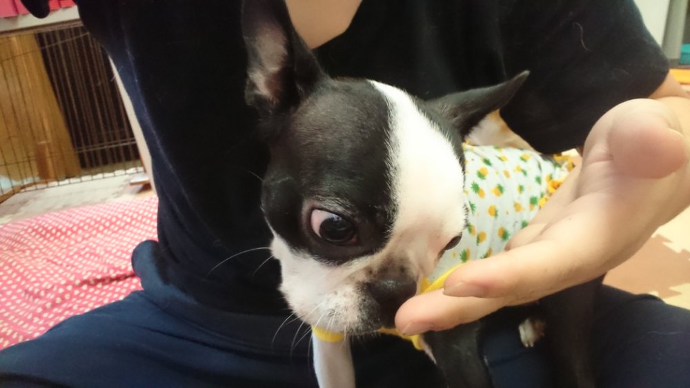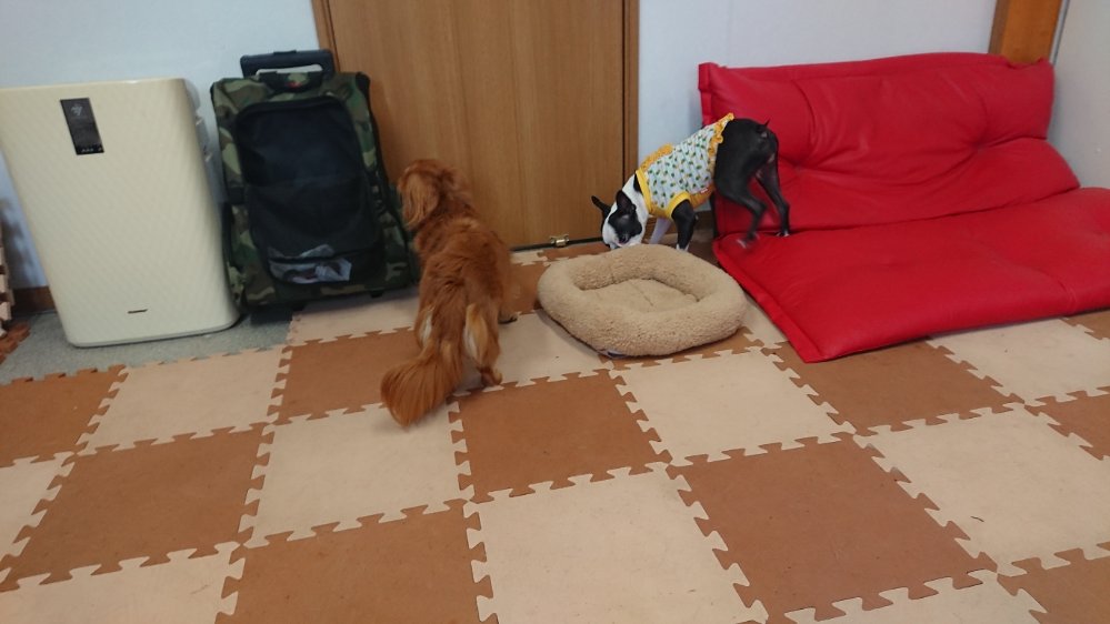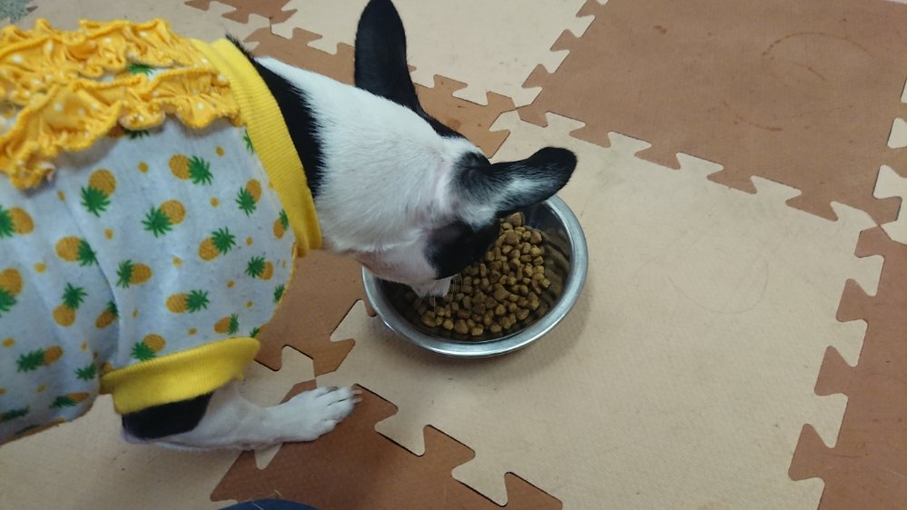 女将ちゃんが来て、まだ来たばかりで興奮して食べないので、落ち着いてきたらまたあげてみます🙂匂いは嗅いでます🙂