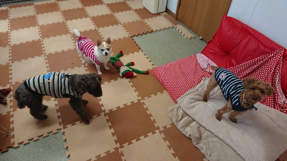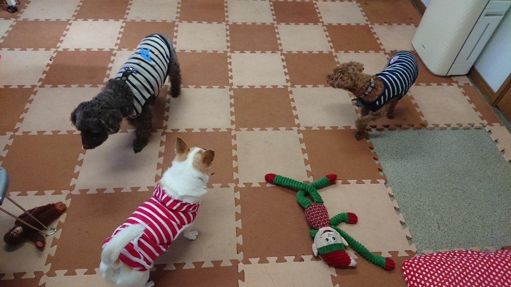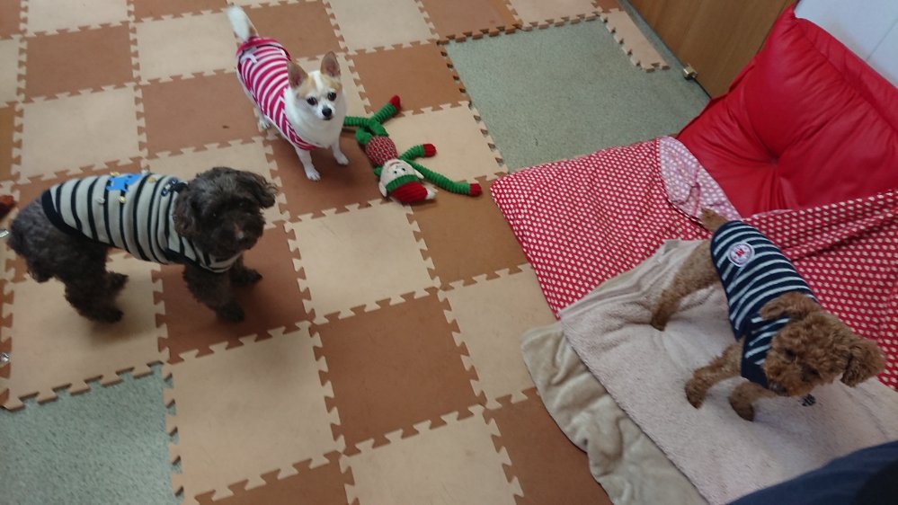 食休みして、床マット洗いながら、みんな付いてくるので部屋とドッグランを行き来して運動中😙