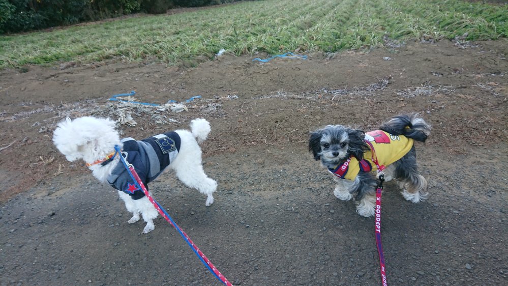 マルとスノーボールはぶるぶる震えてましたが、どんどん歩くので長すぎないくらいにしてます😀