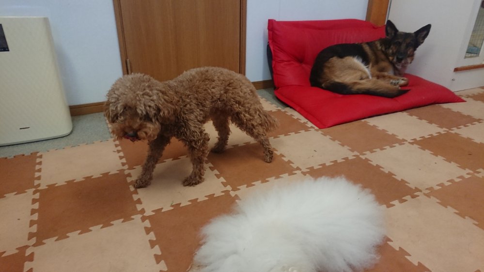 座って床をとんとんして呼ぶと喜んで来るダッシュですが、体を動かすと逃げるダッシュ☹️