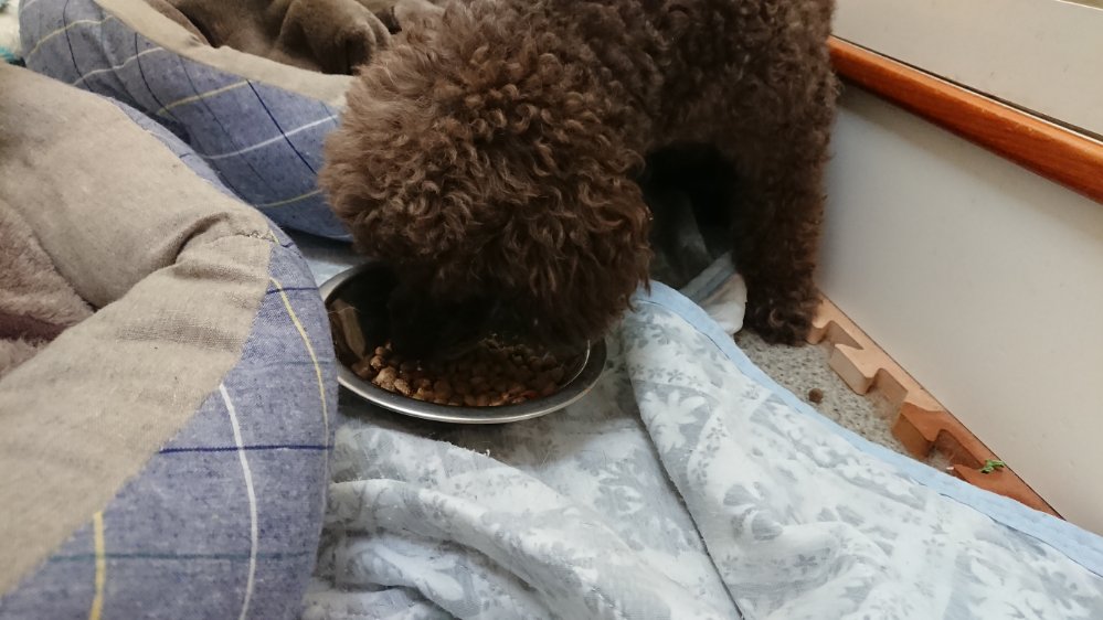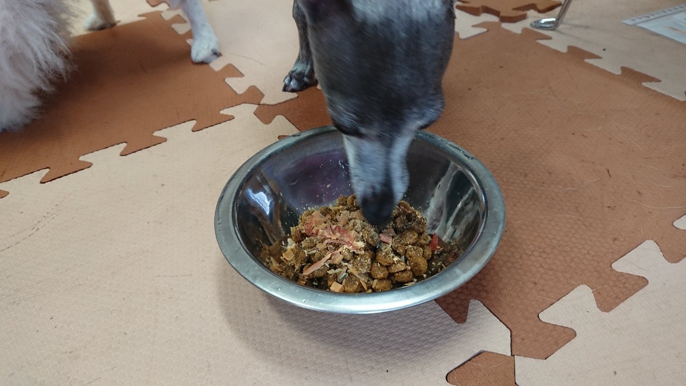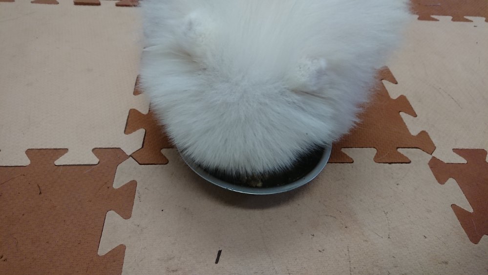 今朝はシロがまだ食べないですが