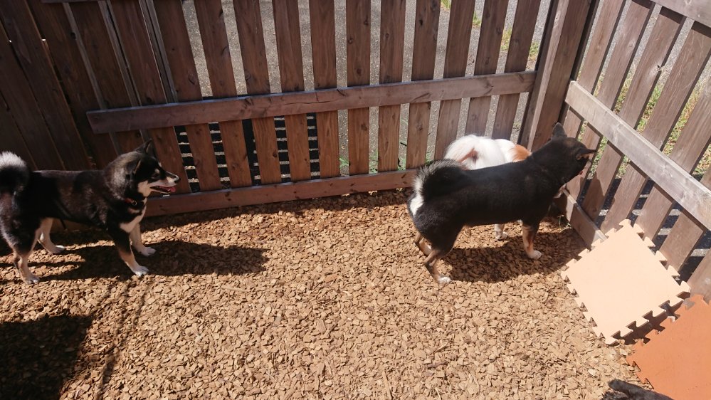 プリンとふくの柴犬同士がちょっと相性悪いかな😅