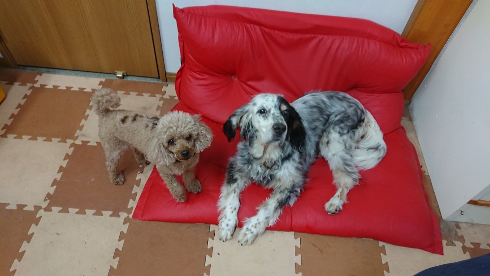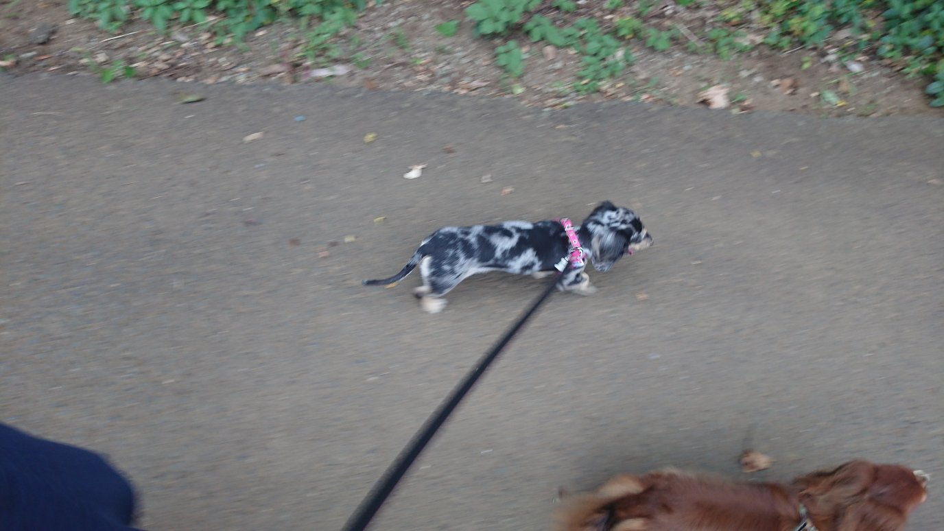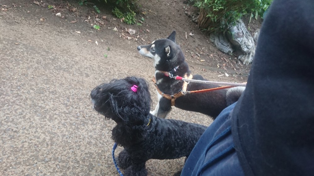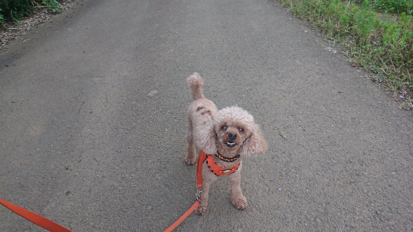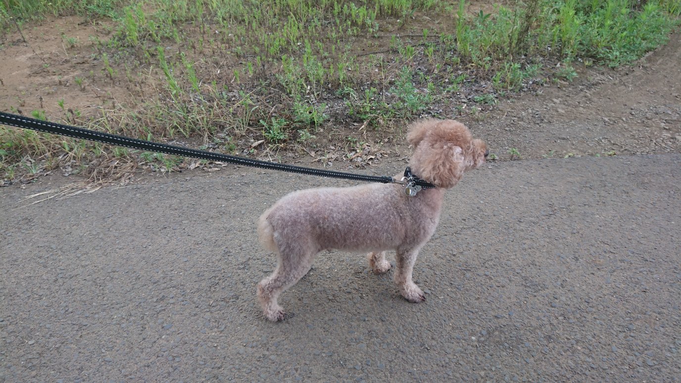 夕方お散歩!!途中で雨が降ったりと不安定過ぎる天気でしたが、なんとかみんなお散歩😅チップは動かない(笑)トイレはランディが両方してて他のみんなはおしっこだけしてます!