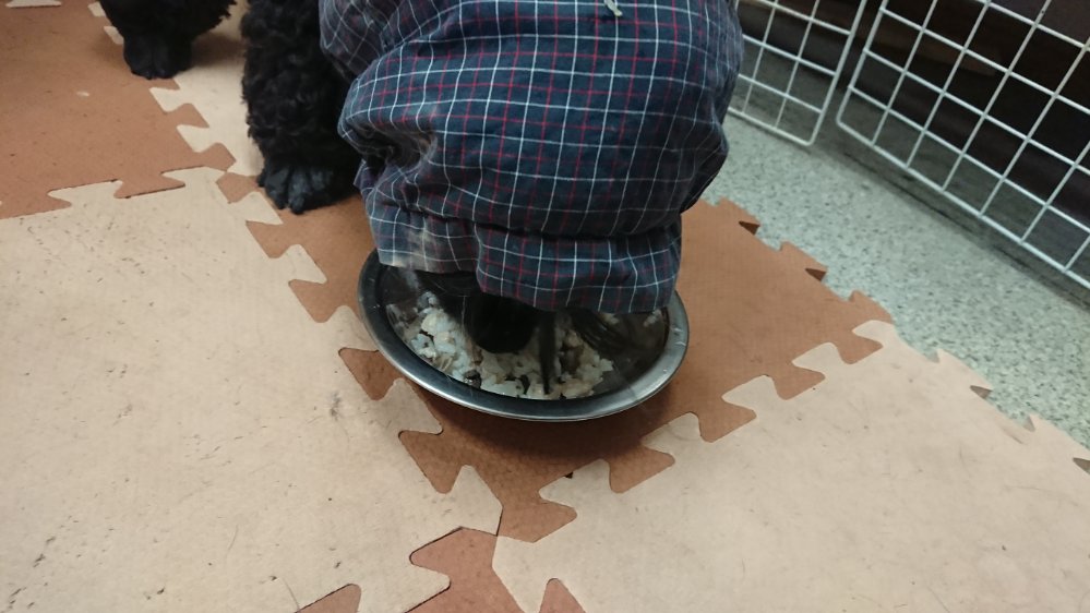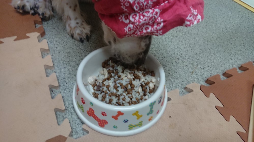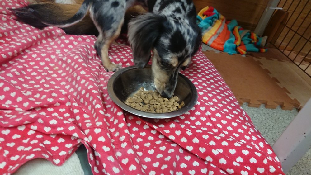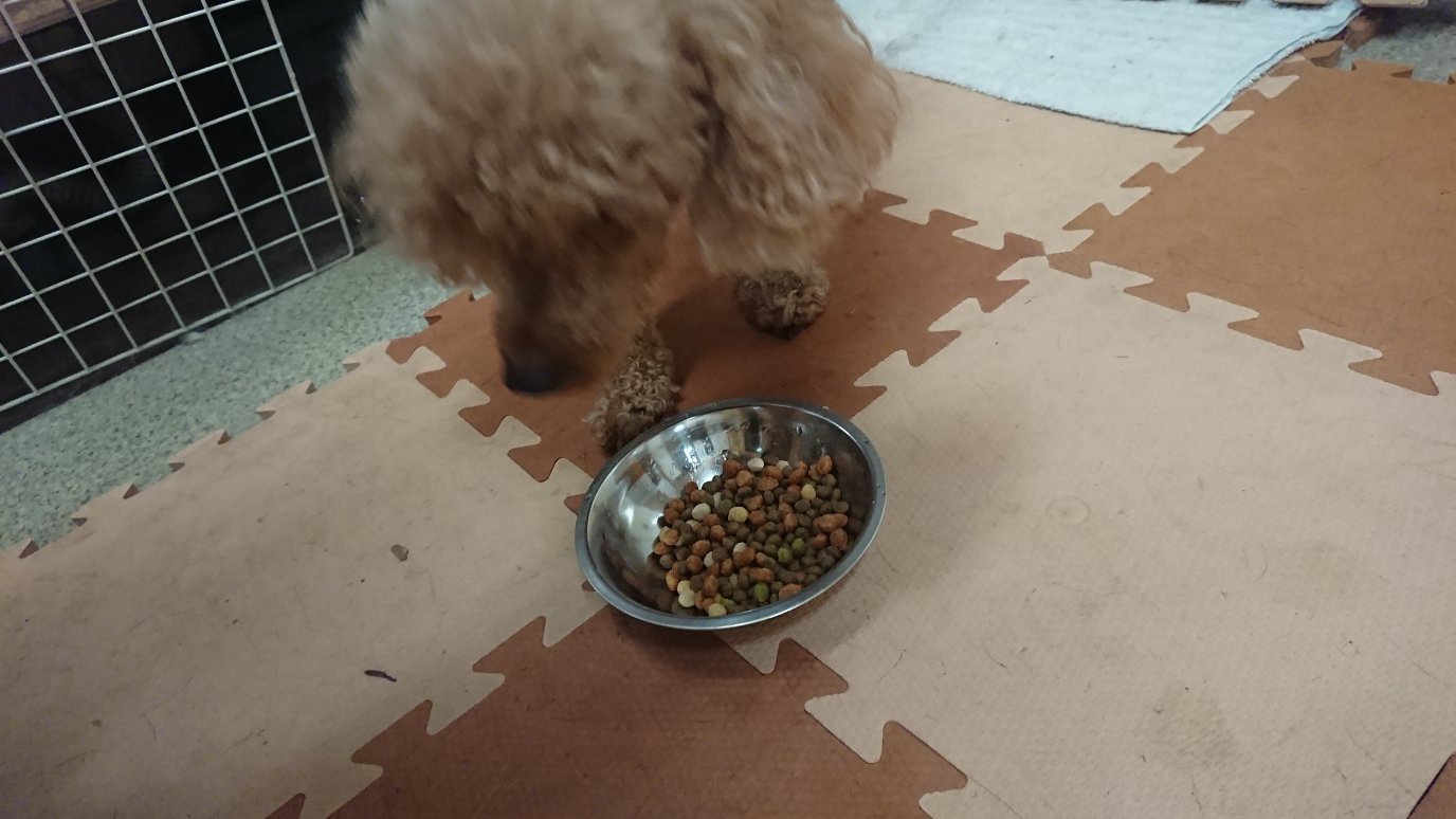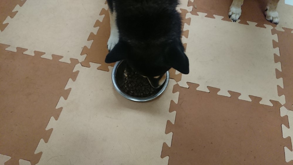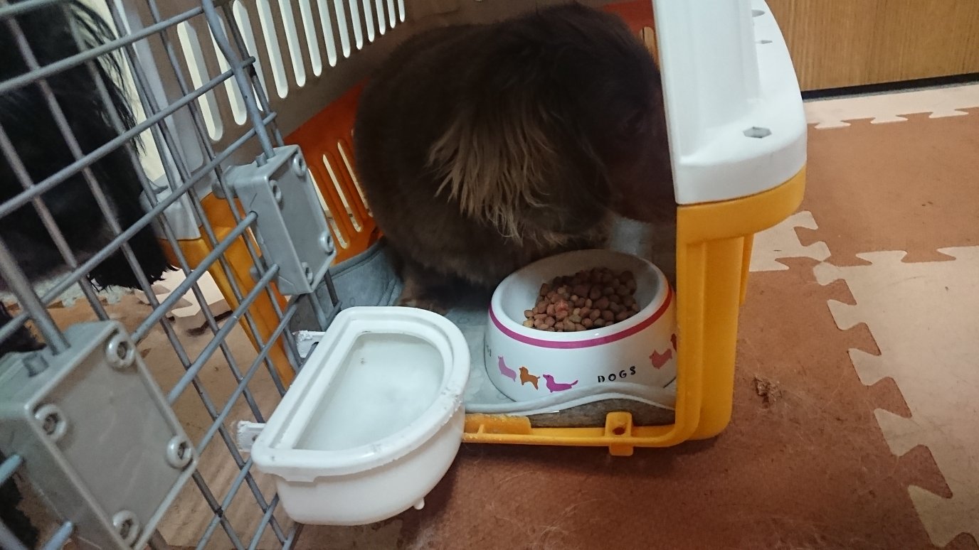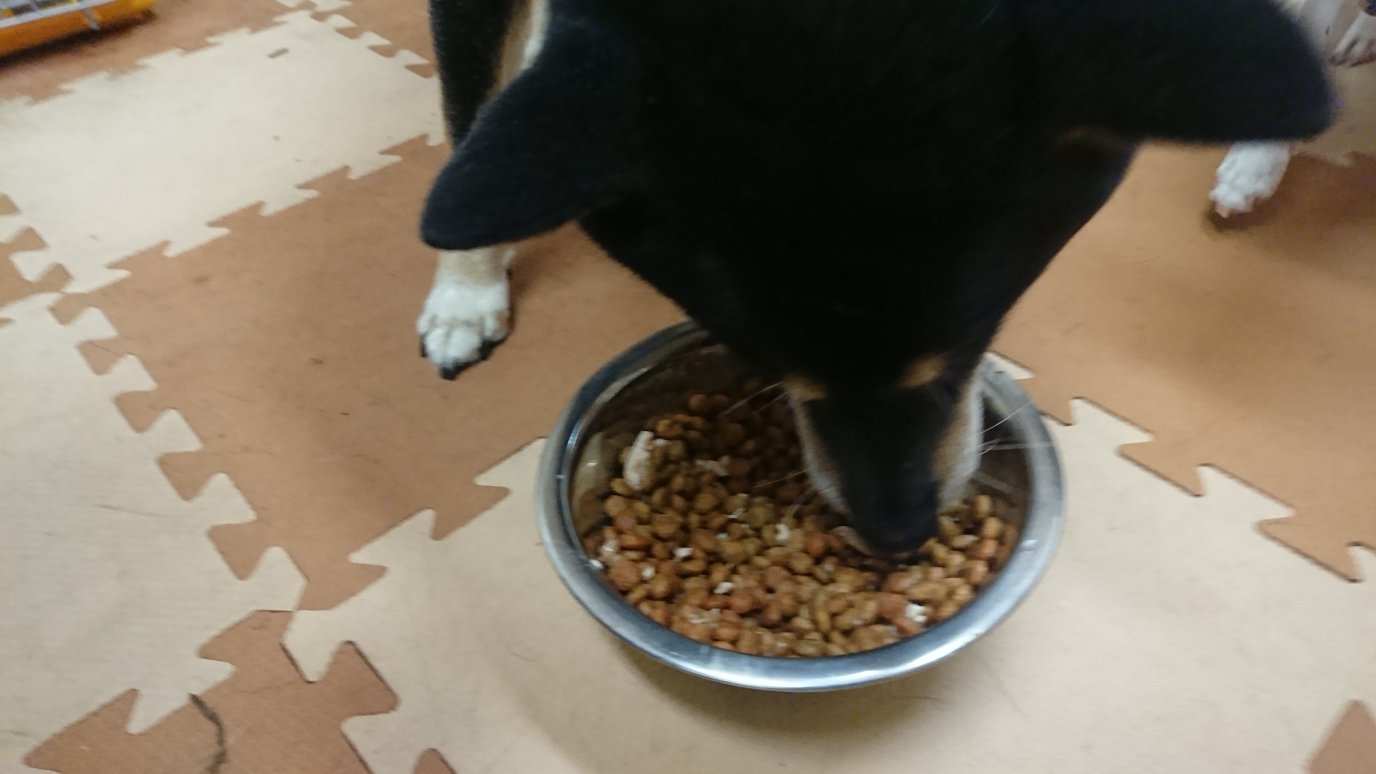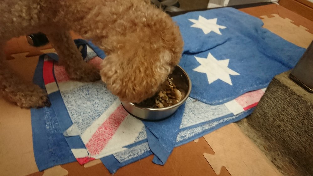 イチの送迎から帰ってきてから晩御飯!今回はチップは一口、夕方から来たマロはちょびちょび食べてます😁で、ランディが半分食べて他の子はみんな完食してます!
