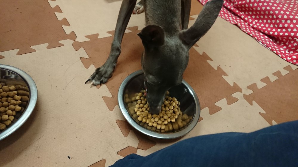 晩御飯!キャロルの写真を撮り忘れてしまいましたが、ちゃんと完食してます!今回はみんな完食してくれました!チョコは薬二種飲んでます!マロは寝るときに一緒に置いておきます!