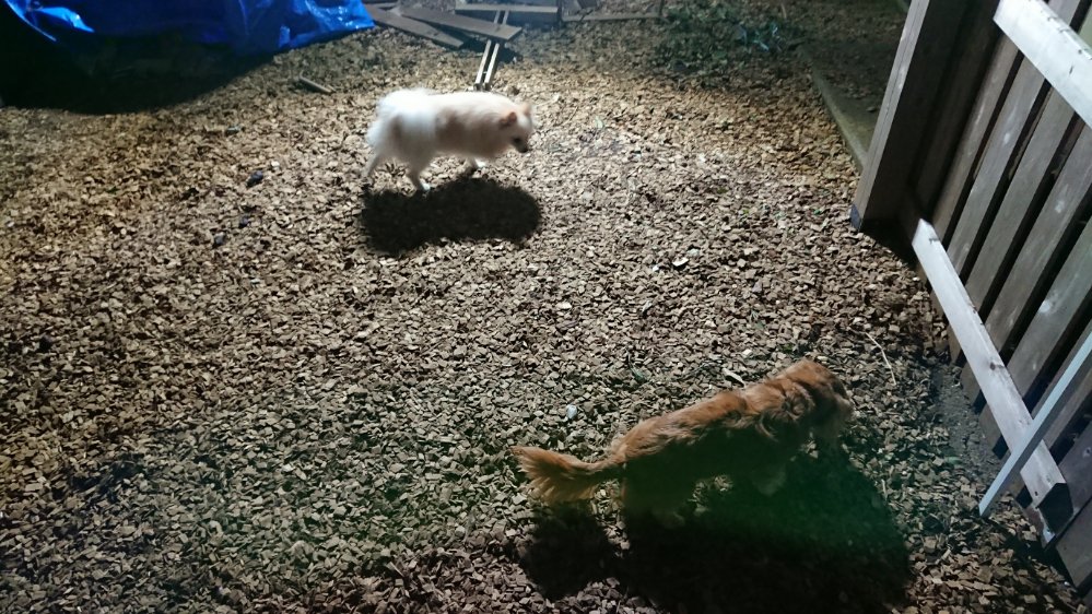お散歩組のお散歩してたら空からピカピカゴロゴロと😓