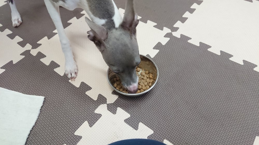 ナツは昨日よりちょっと少なめに入れて食べたらちょっと足してであげました。