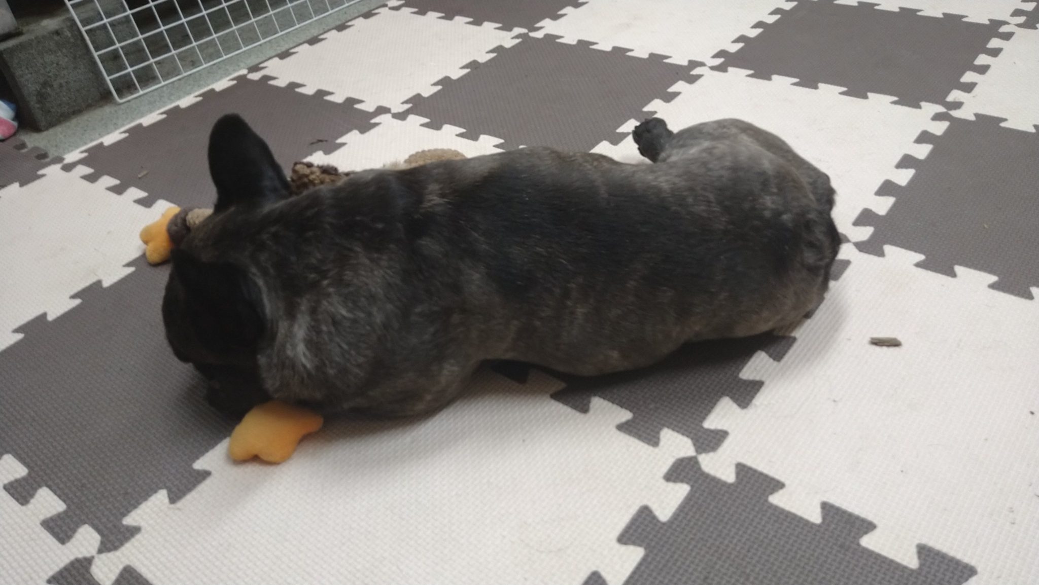 晩御飯の後にまだはしゃごうとするトラとペコでしたが、食休みをしっかりさせるために抑えてたらそのまま爆睡中😁