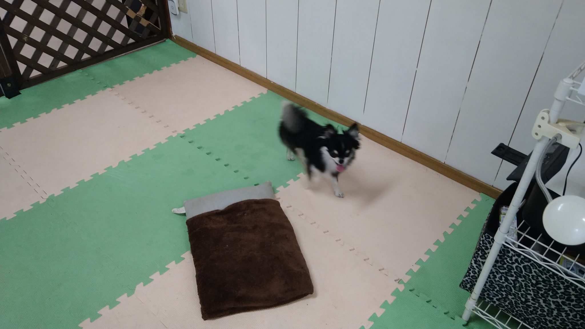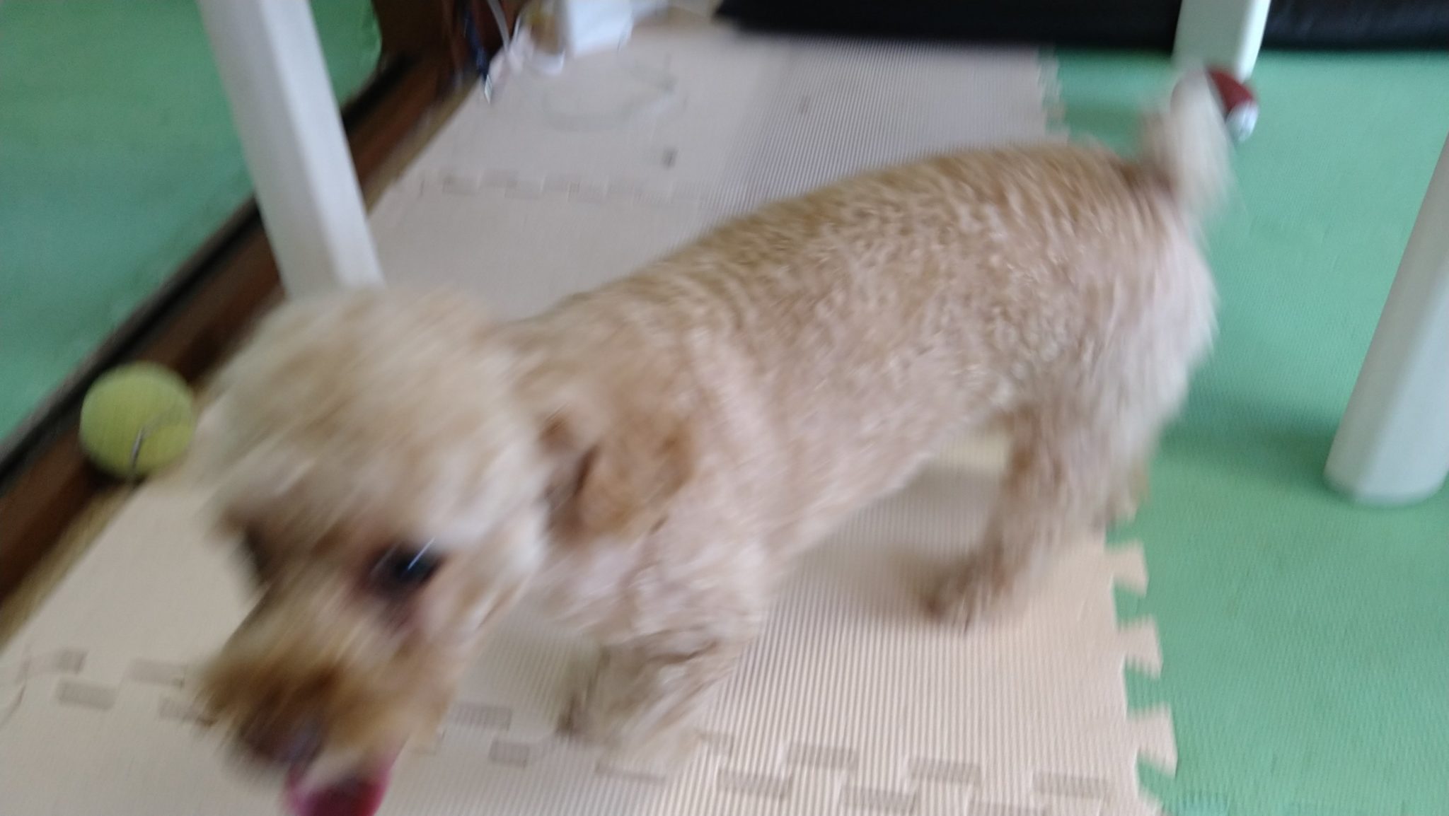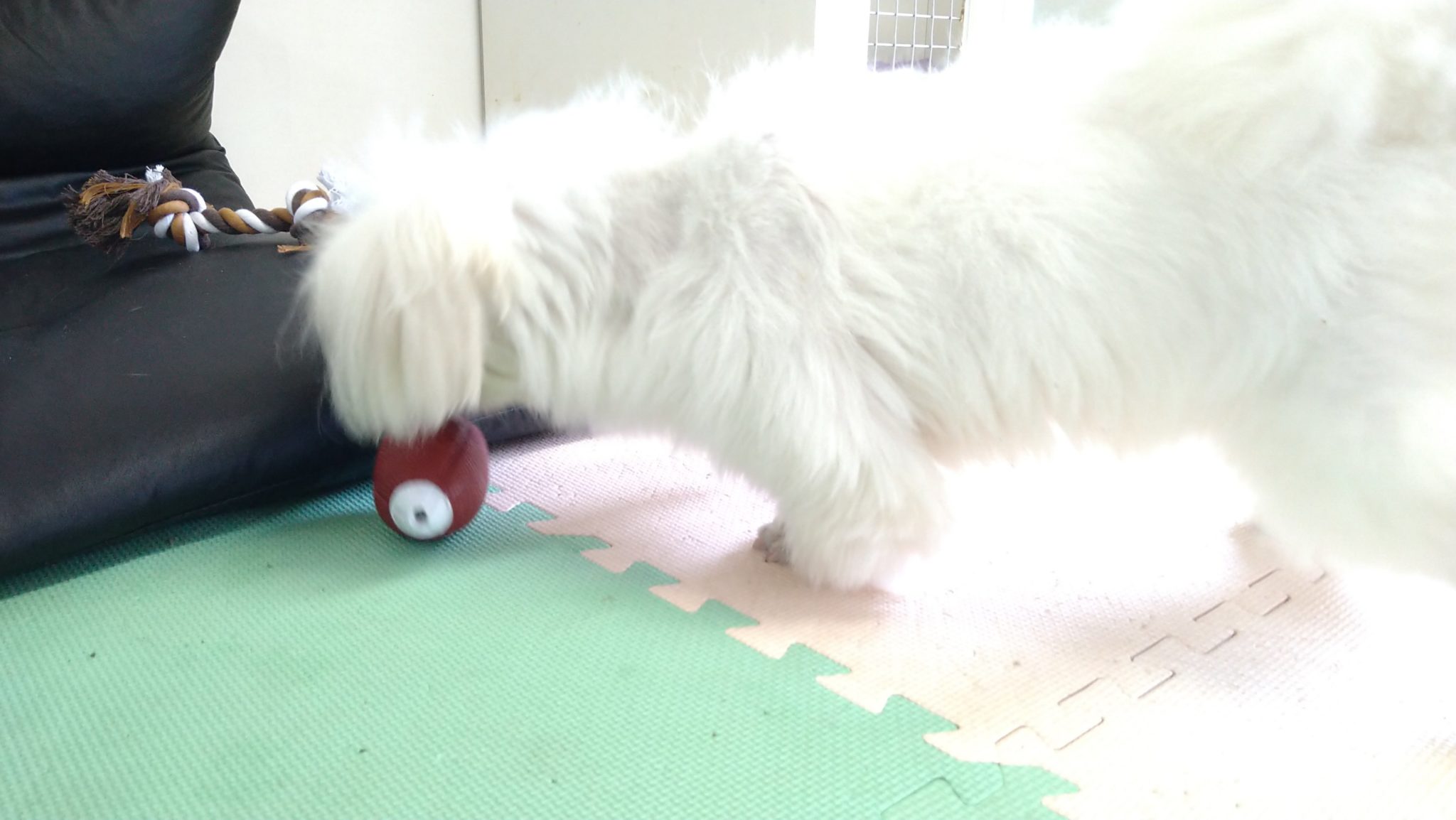 咥えようとして思ったより大きくて転がっていくおもちゃを追いかけるモコ😁