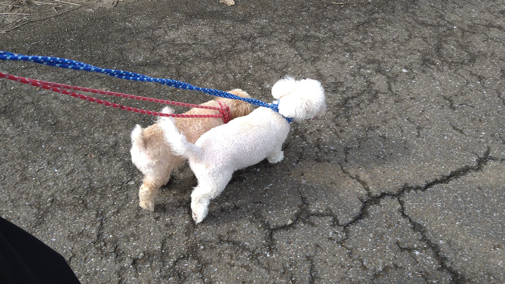 ルナとさくらはお散歩まったりですが