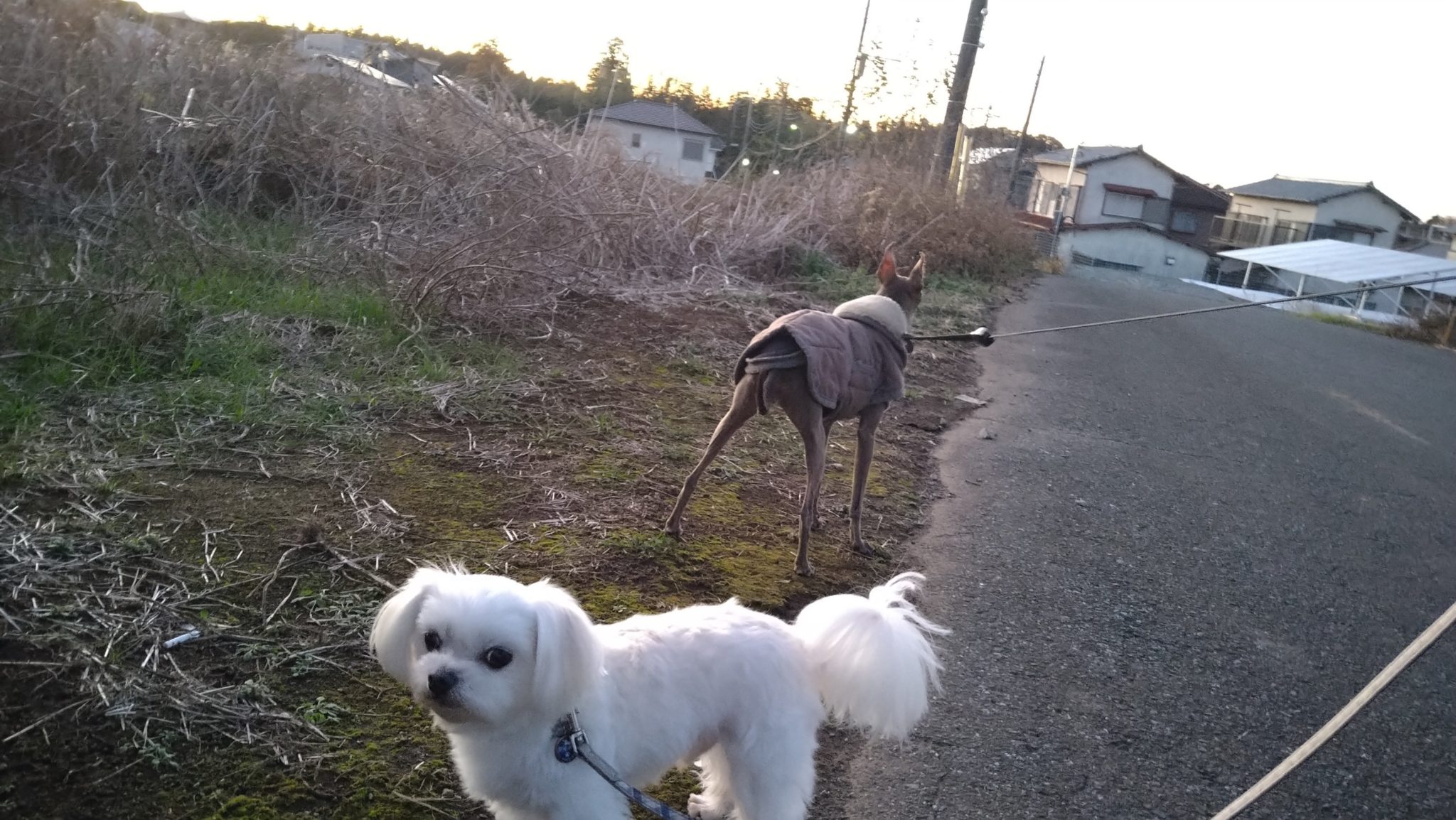 ルナ、ミルキー、パルはゆっくりとお散歩して
