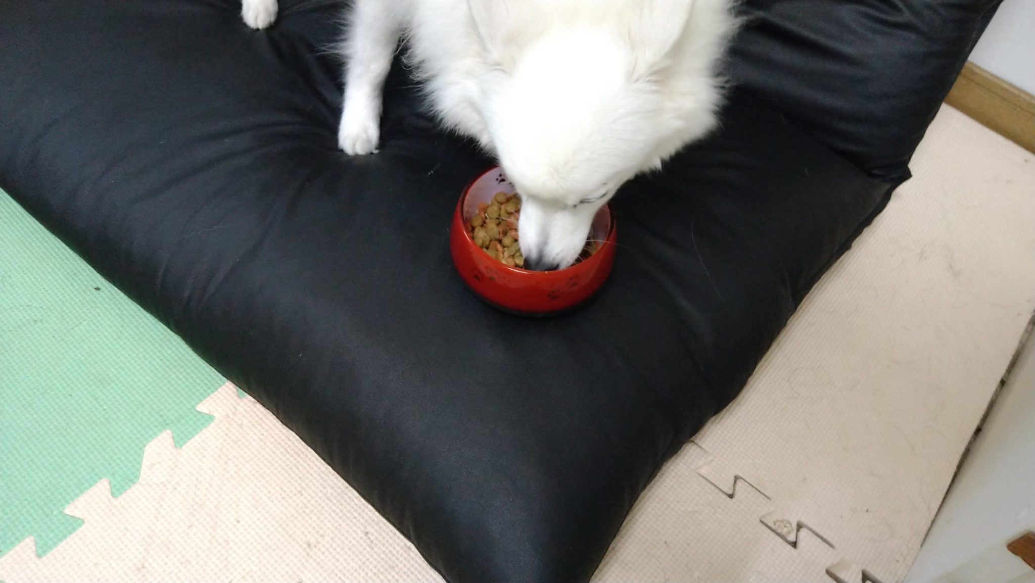 ぴこは一口食べて止まり、ららとマロンは完食しました!