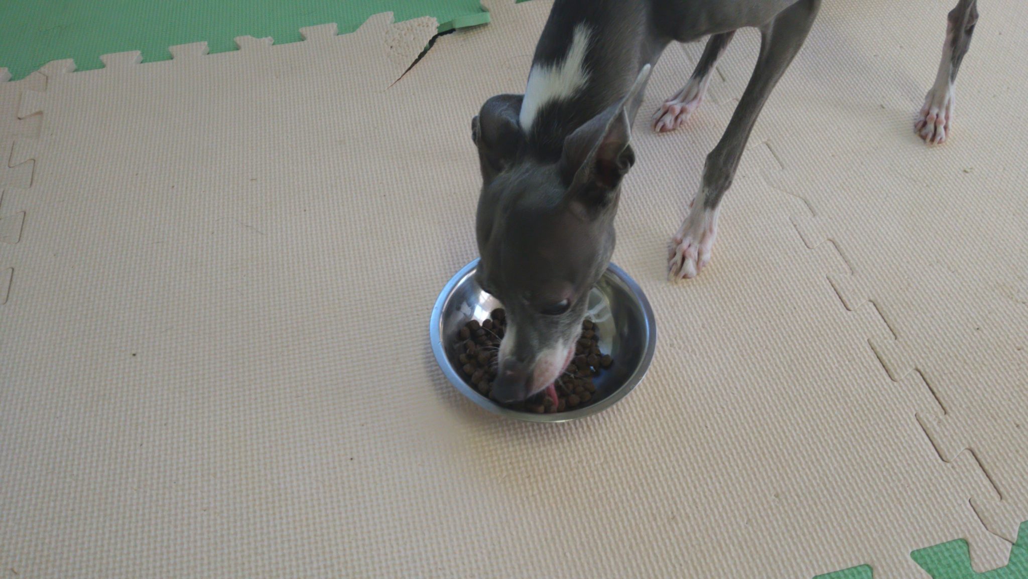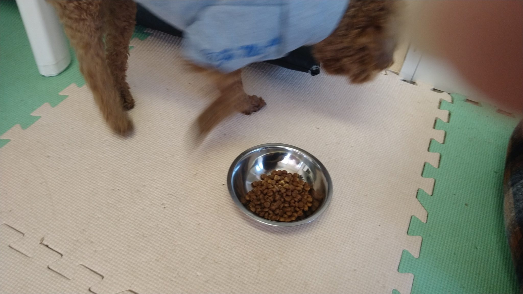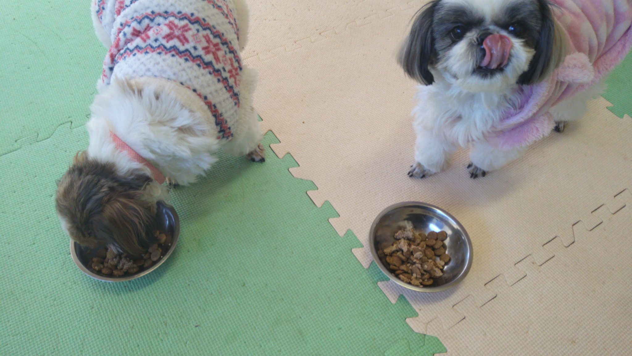 まるが半分、はなが他の子のご飯ばかり気にして食べなく、ペコは匂いかいでスルー😦