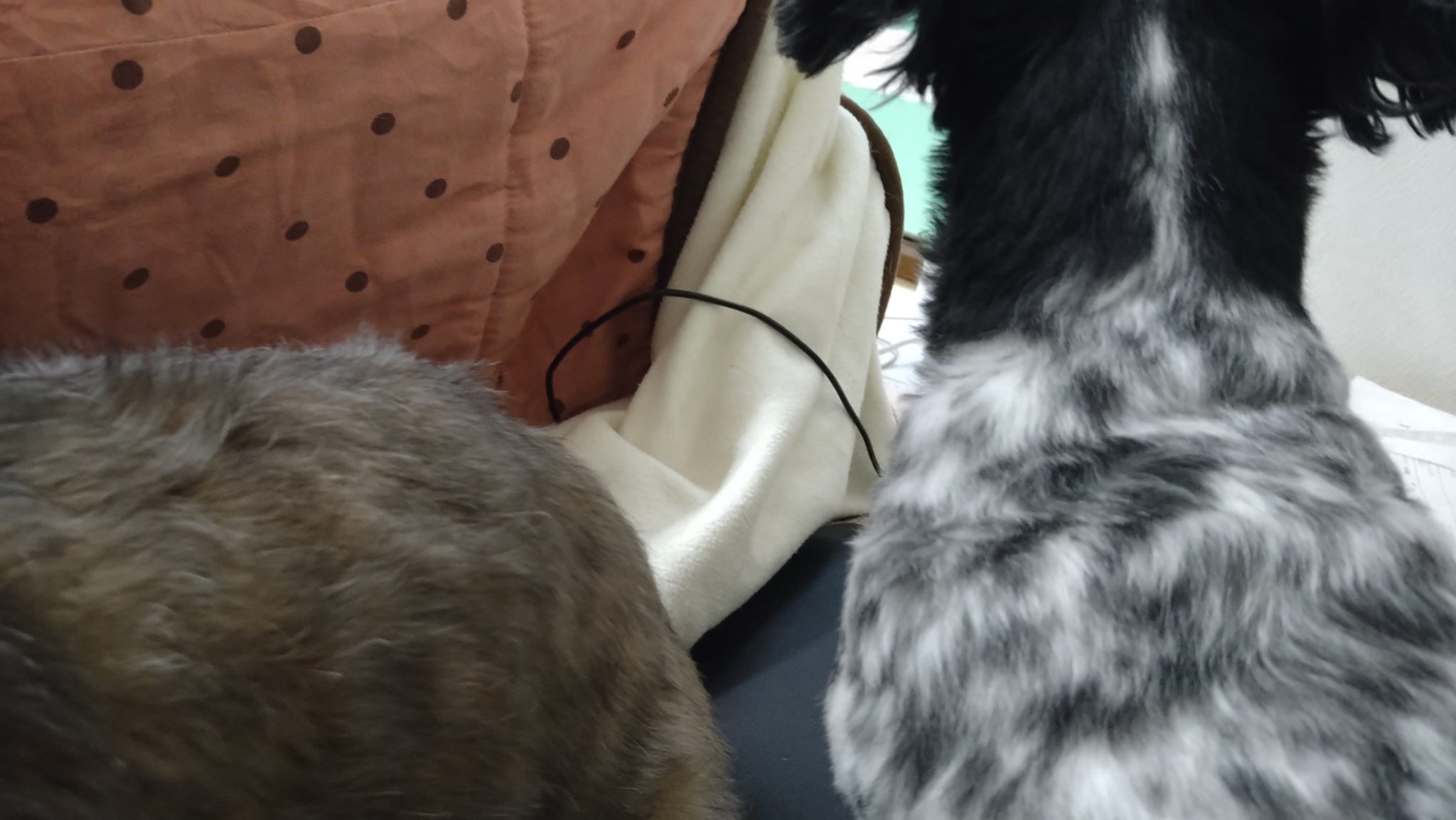 晩御飯終わって前にはミルクの背中とダッフィーのケツ😗