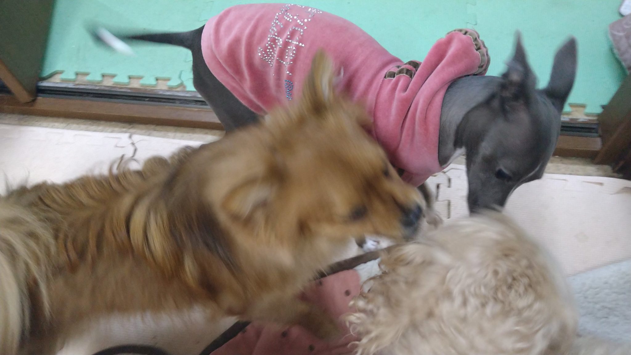 晩御飯終わって、こたつ、琥珀、ビンゴは仲良く遊んでおります😙