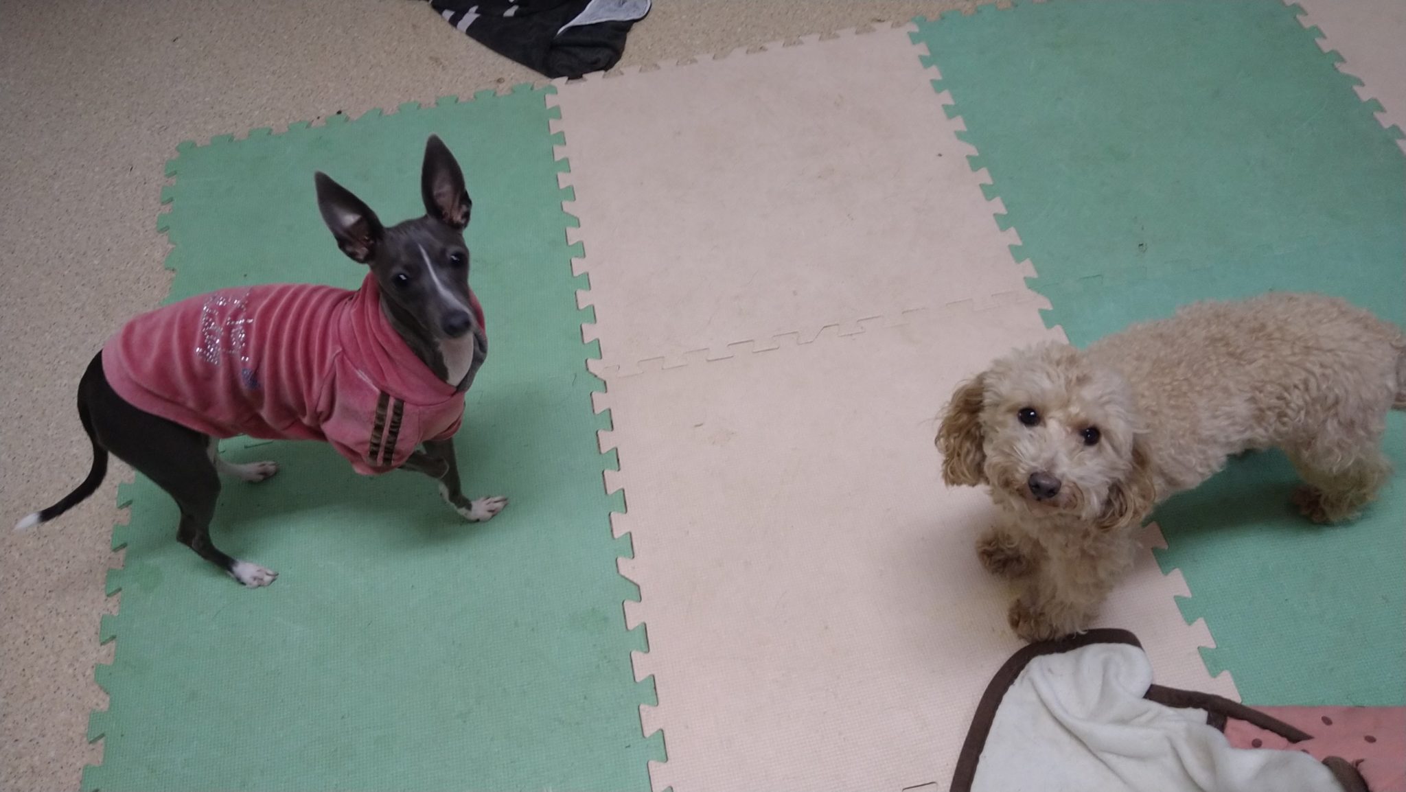 晩御飯終わって、琥珀とこたつ、ちいさんのお帰りの支度😀