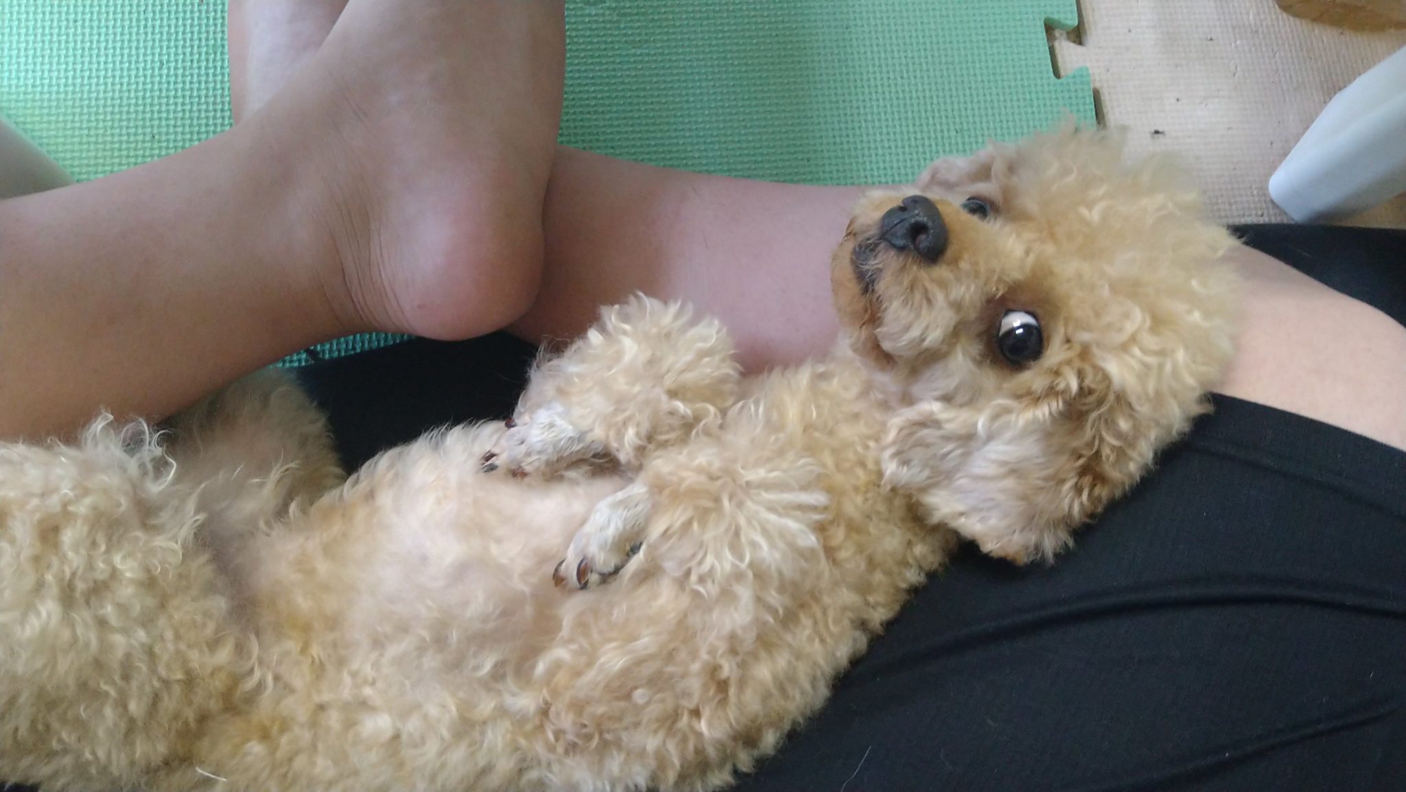 いつの間にか膝にくぅが😀