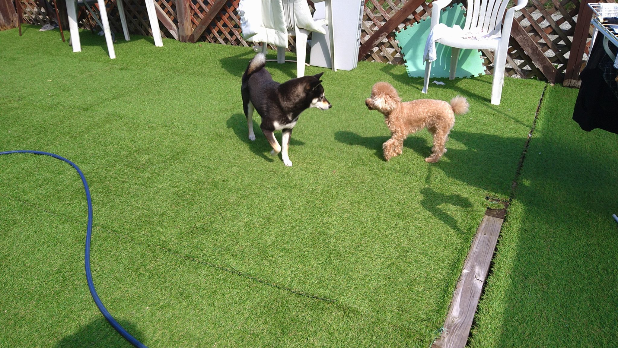 こむぎはマイペースにしてるけどたまにあんずに追いかけられる😅