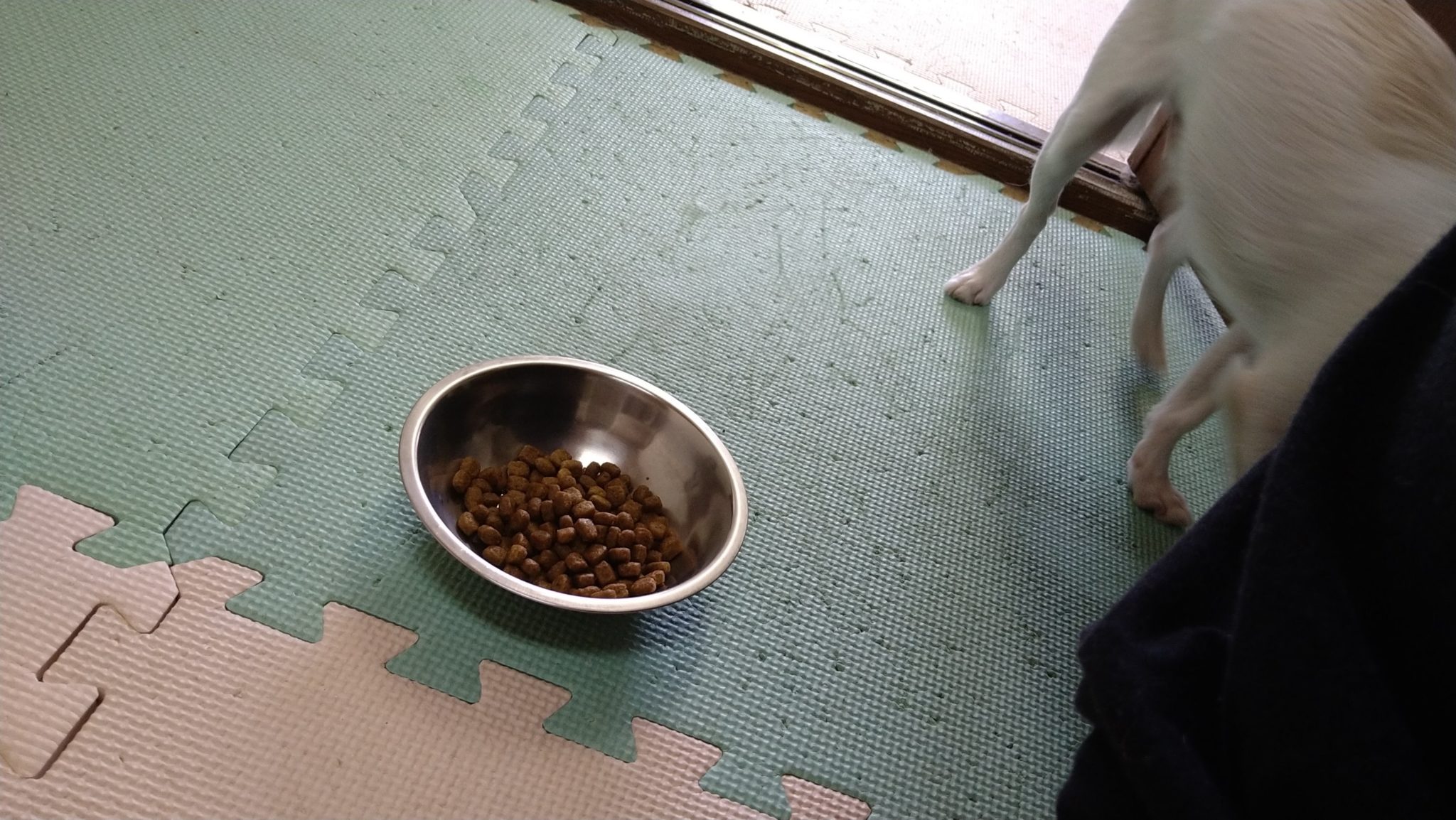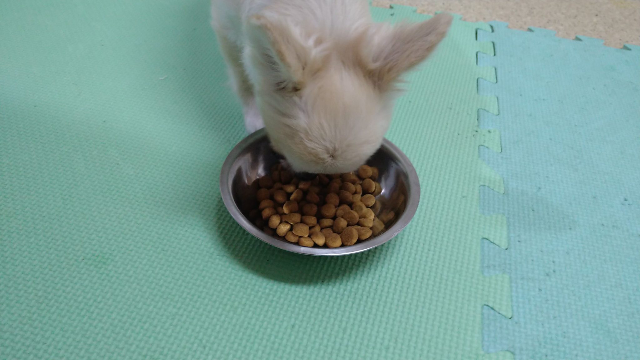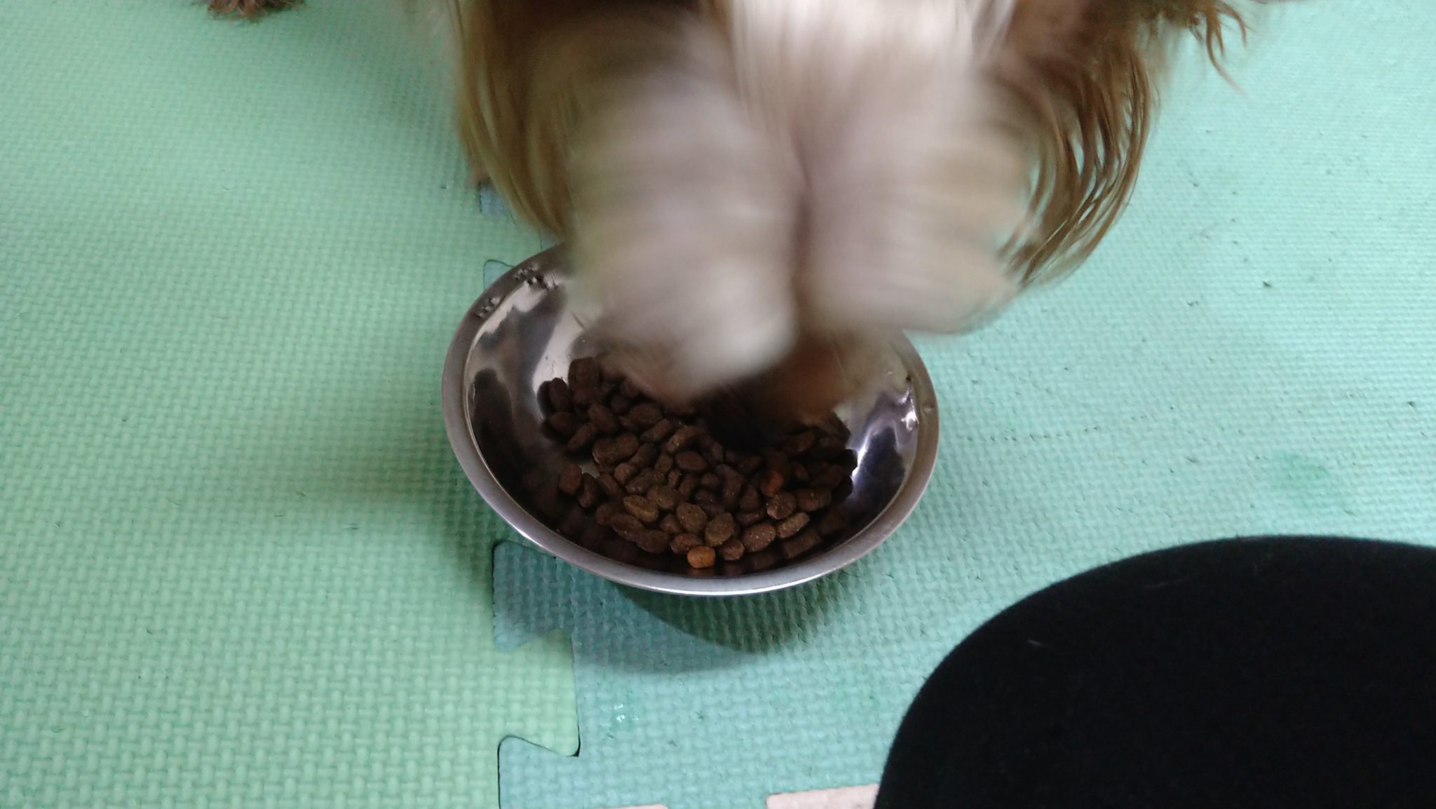 ラキがスルー、ラフは1/3、たぬぽんも一口だけ!