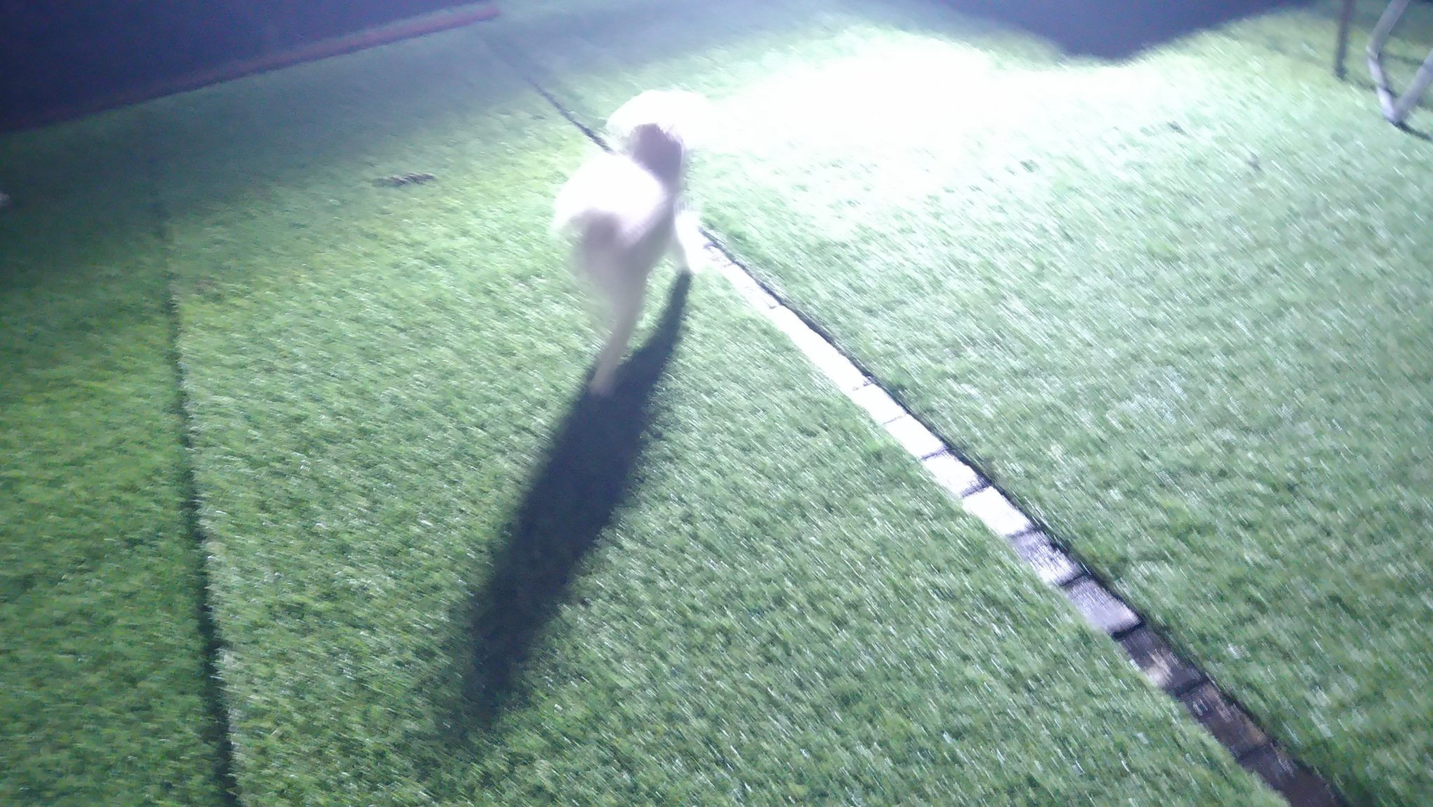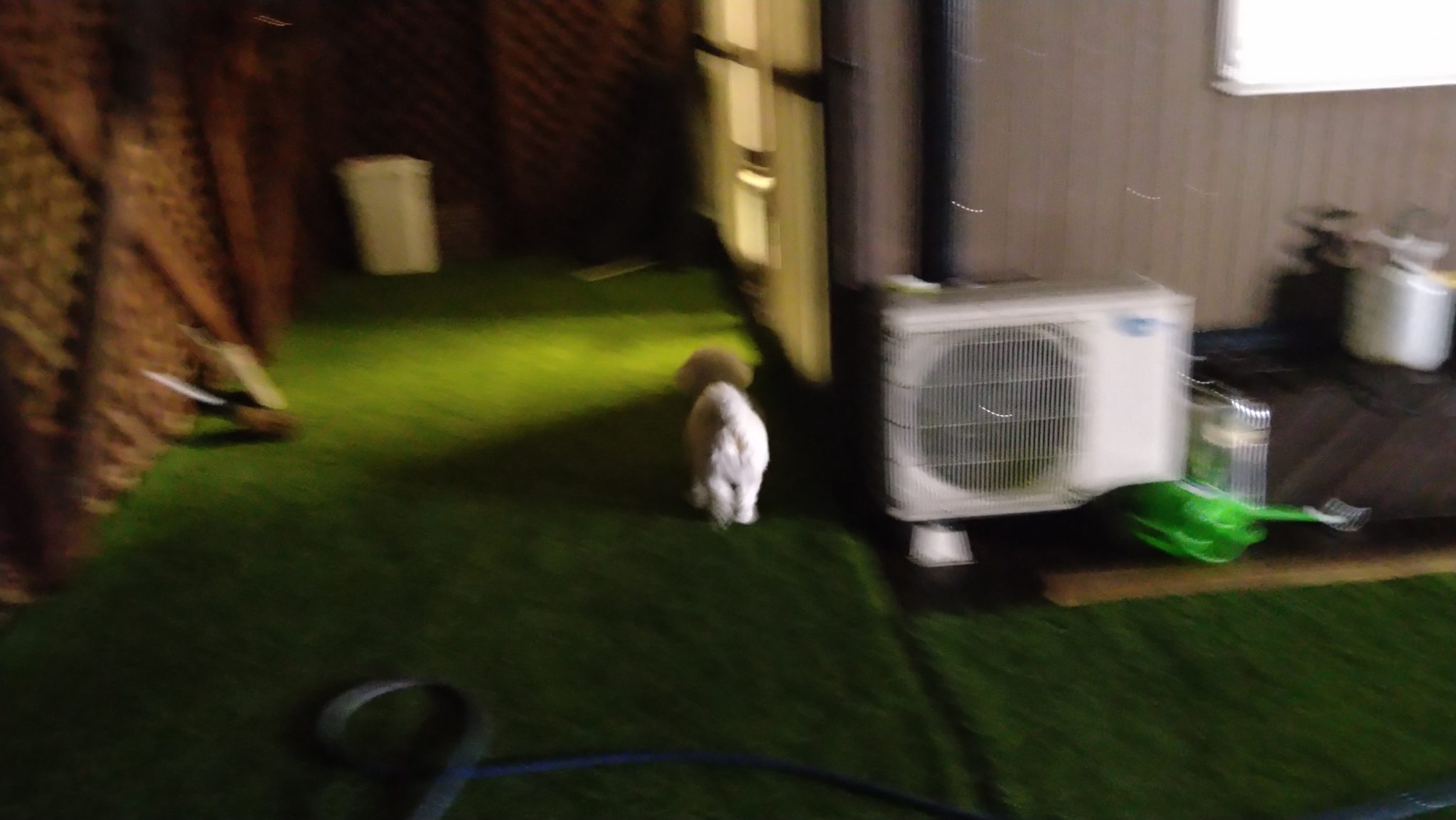 今時間なんとか、雨止んでるのでデッキに出すと疾走のポール、むぎ、モモ😯