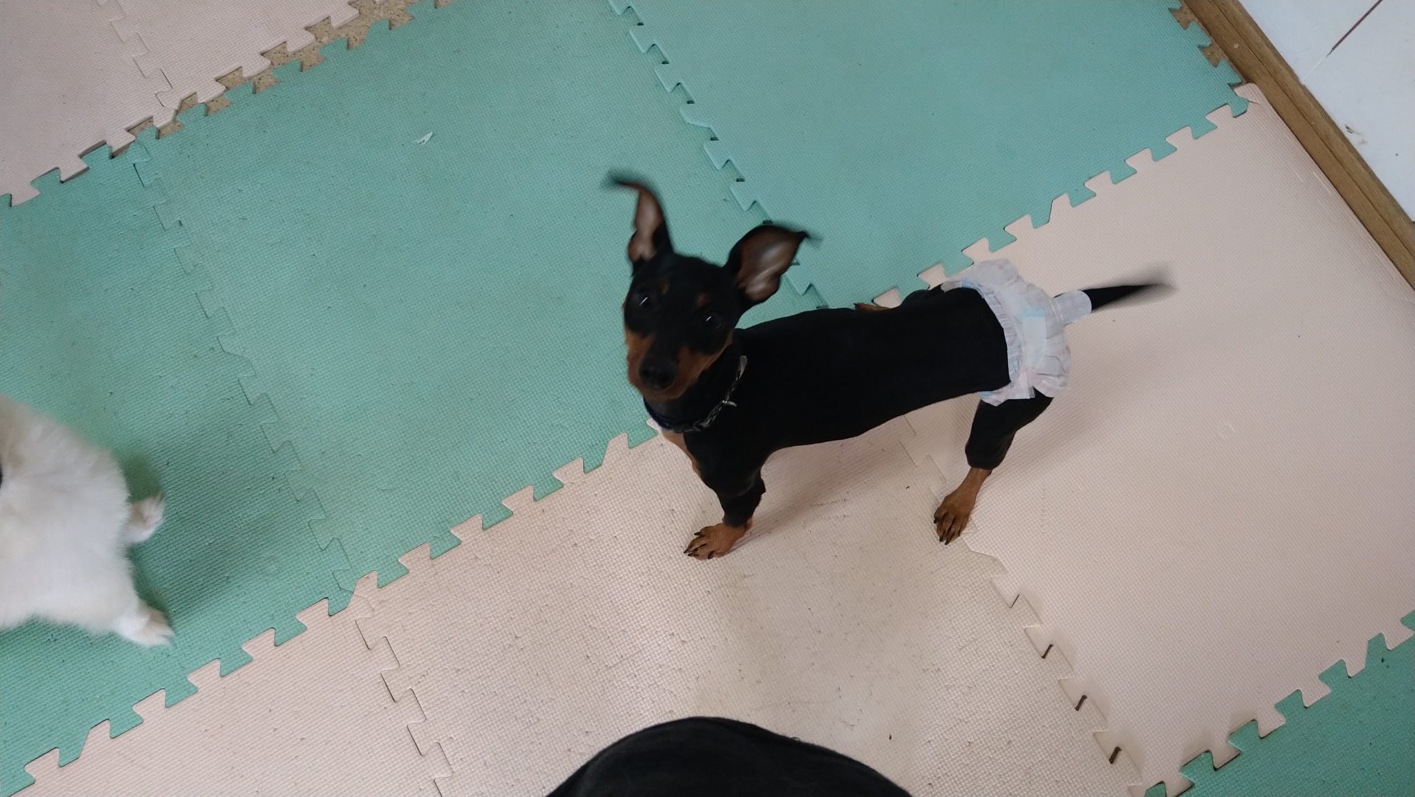 たまにミニピンのベラさんと遊ぶときが!