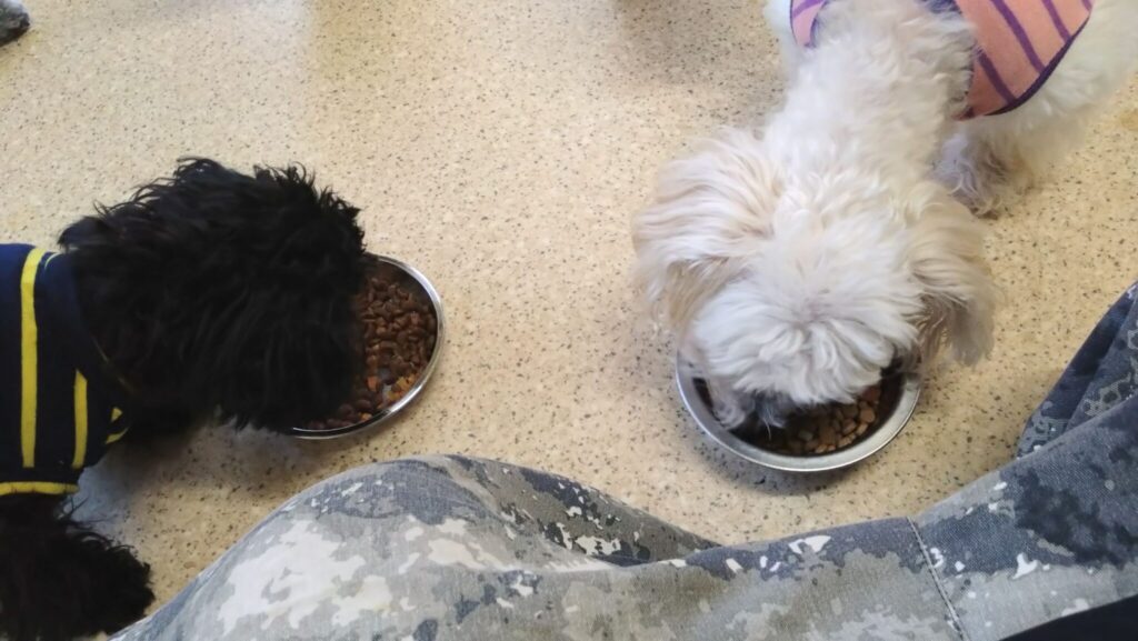 ななこがちょっと食べて、シェリーも半分。