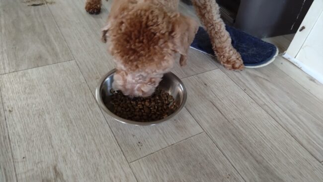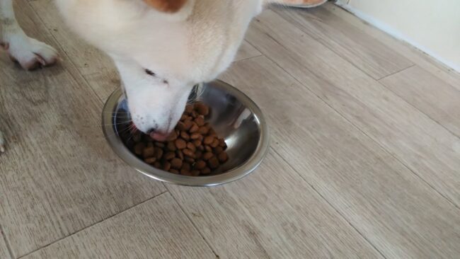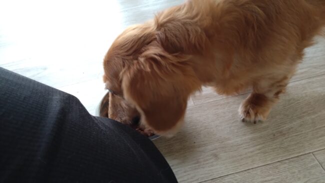 サニーがゆっくりだけど半分食べて