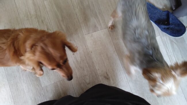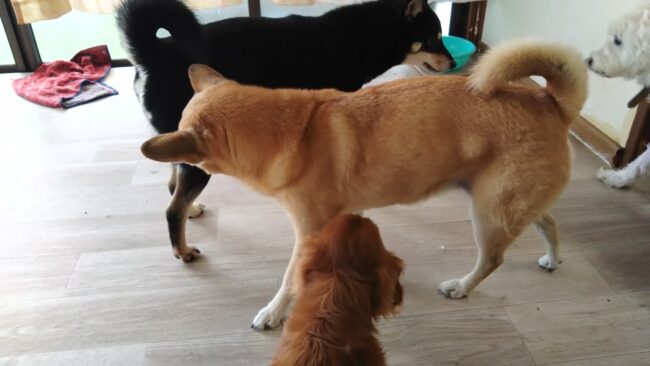 ハチが来て、小豆、ハクとワイワイしてるところですが、たまにちょっといきすぎる😅