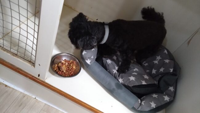 サニーがゆっくりだけど半分食べて