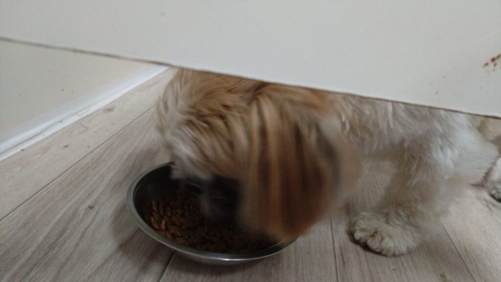 あんずはカリカリカリ😁あまあましながら遊んでやのカリカリカリ😁