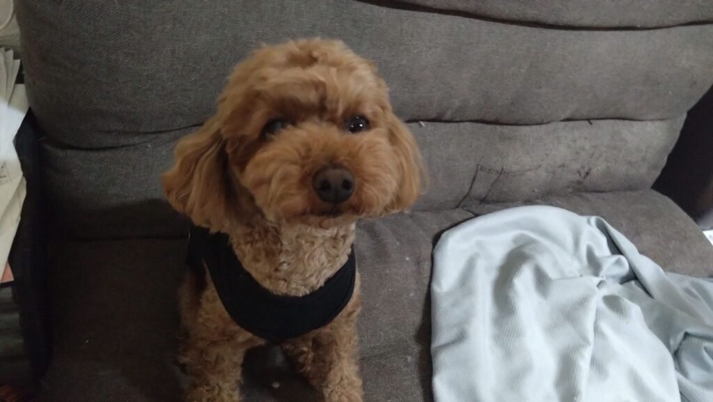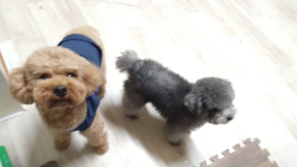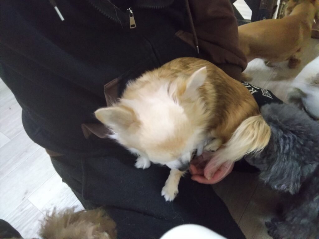 こむぎがゆったりしてて、ハナは膝乗れずに残念そう😅